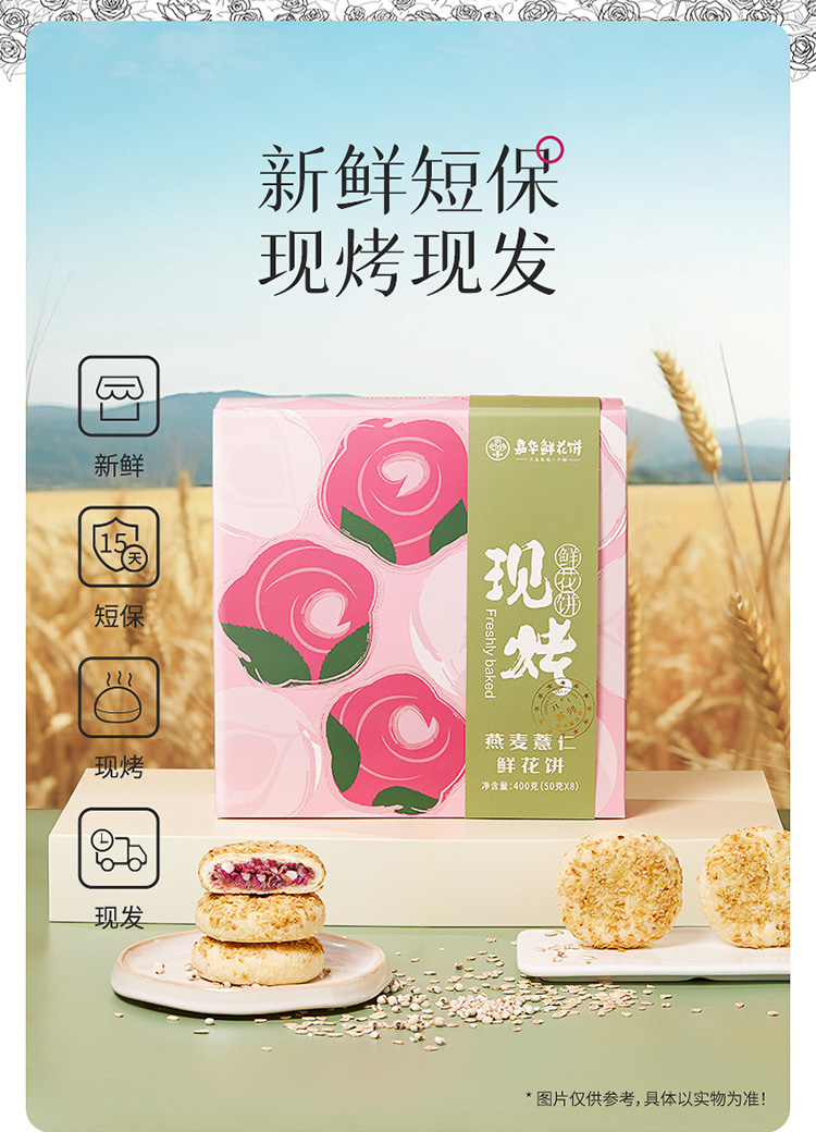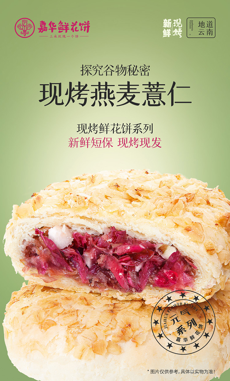 嘉华 现烤燕麦薏仁鲜花饼 8枚盒装400g
