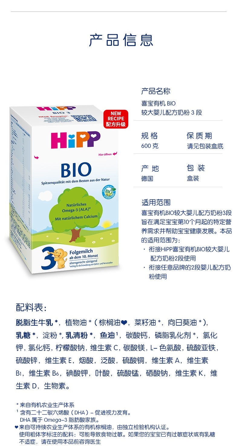 【保税仓】德国喜宝Hipp有机3段 600g(新包装)