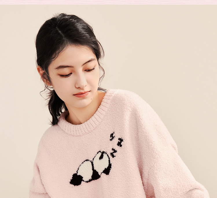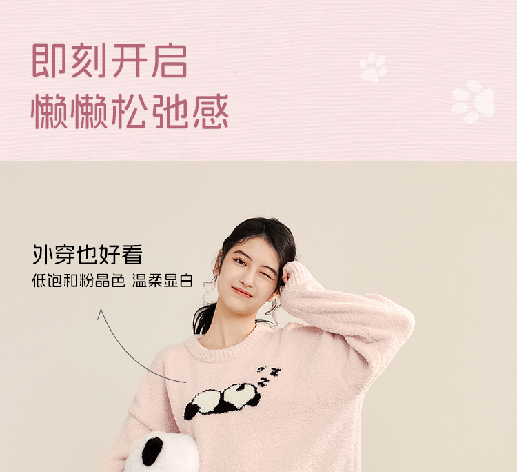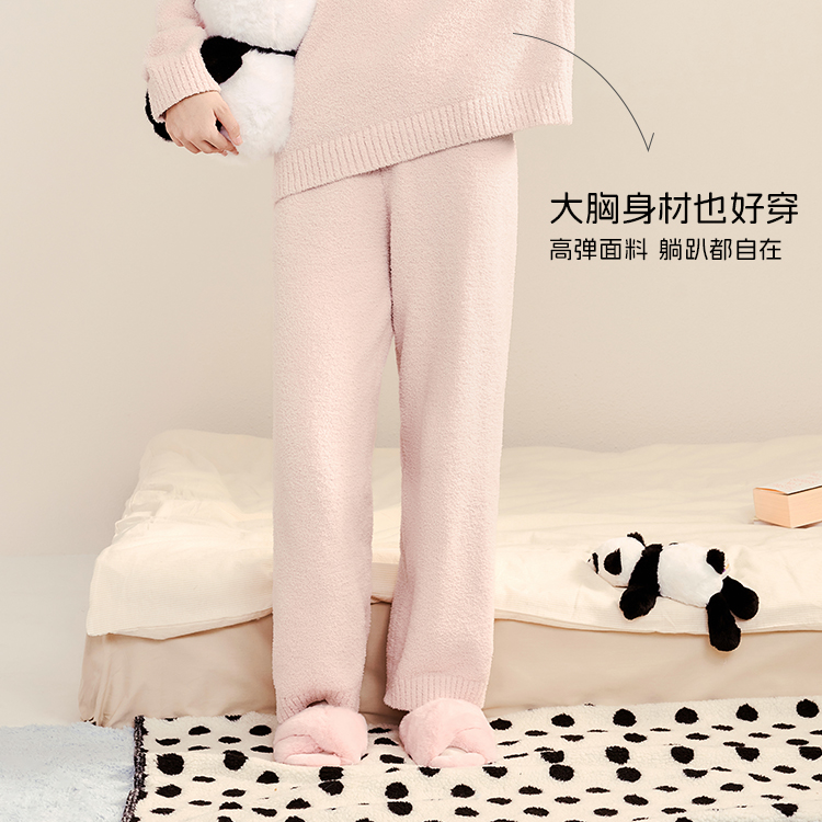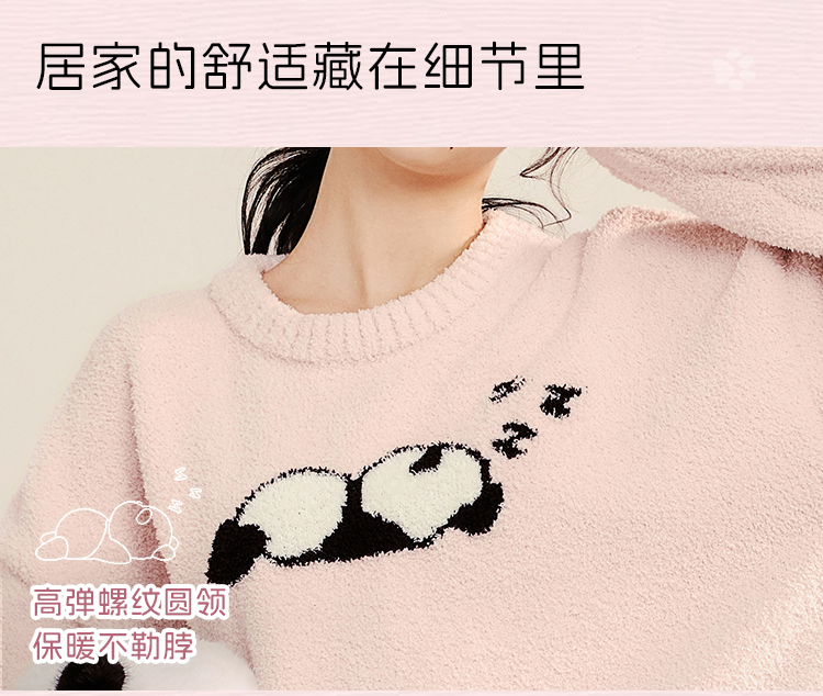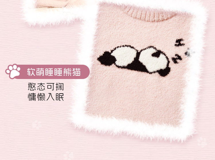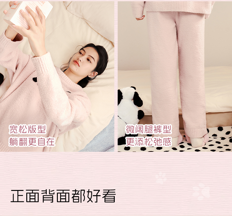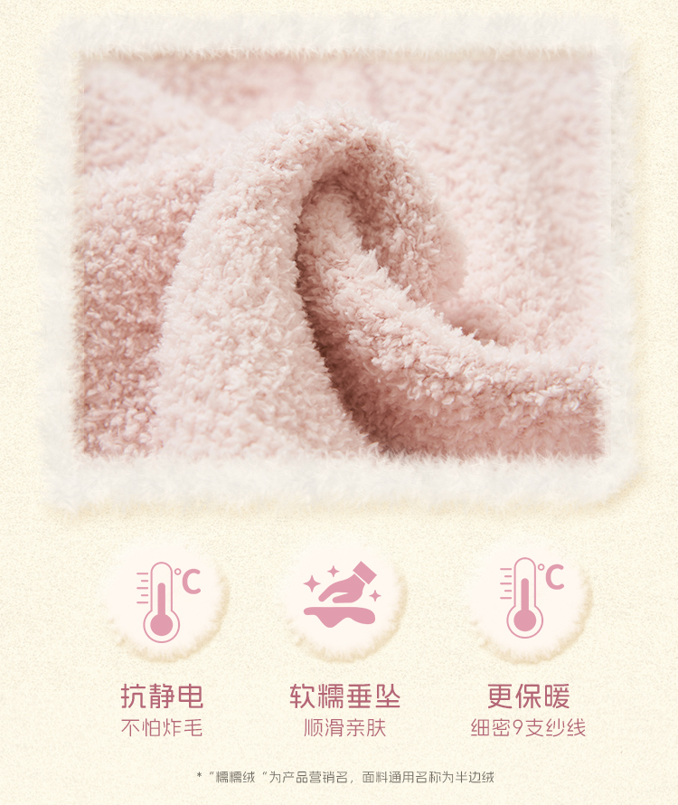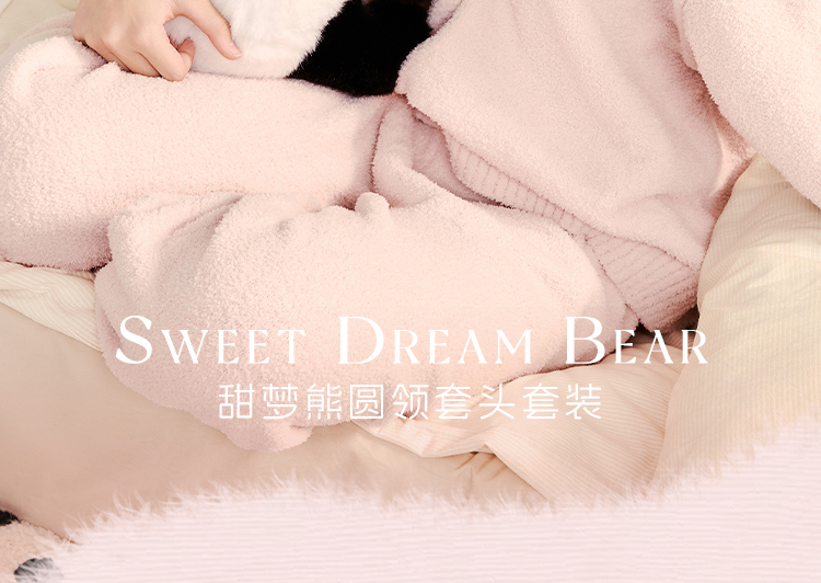 奶糖派甜梦熊圆领半边绒睡衣女保暖加绒秋冬抗静电可外穿家居服