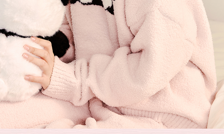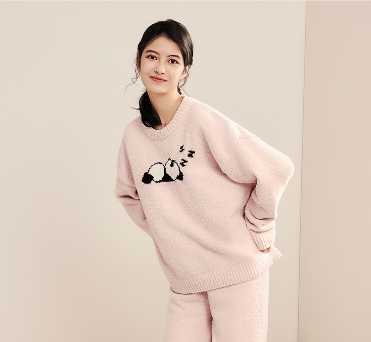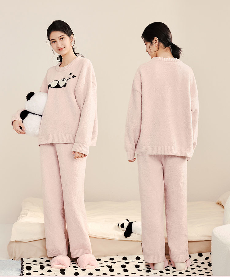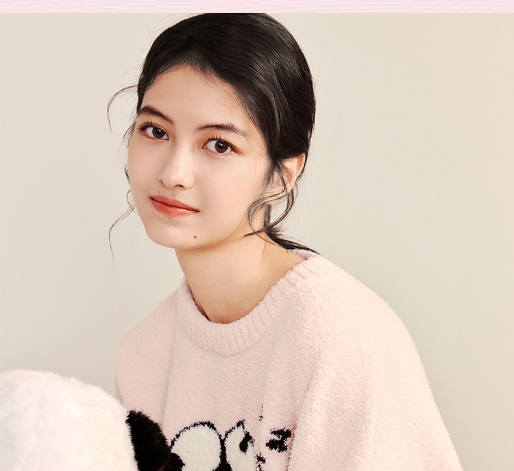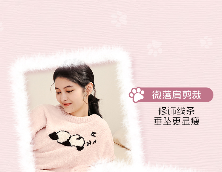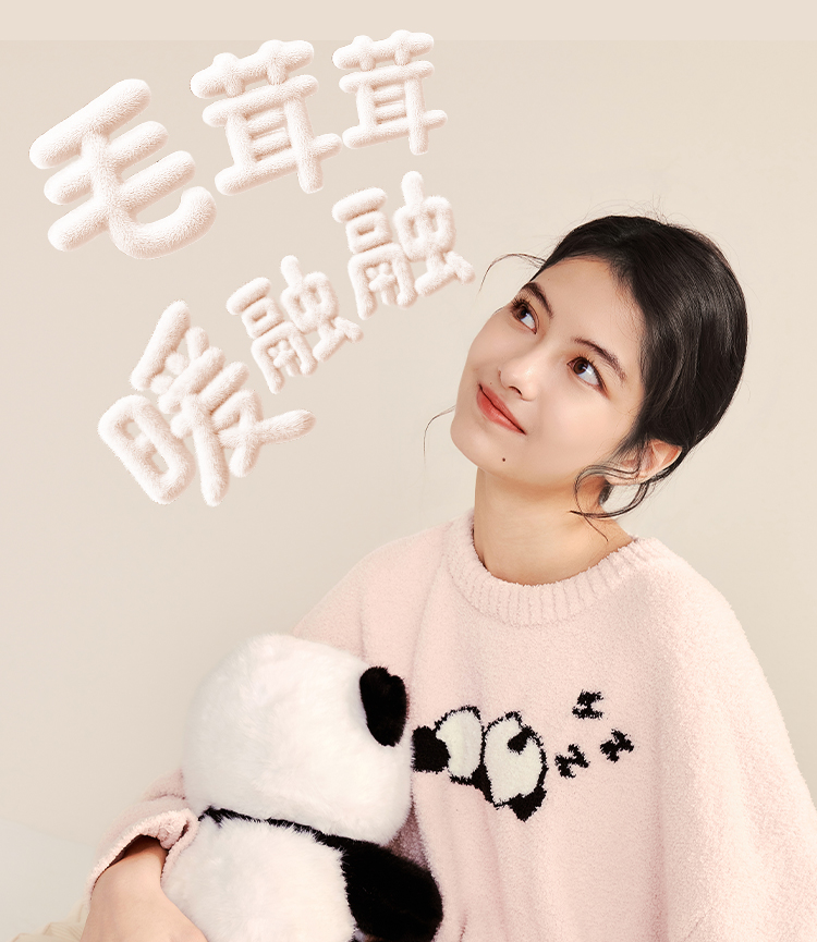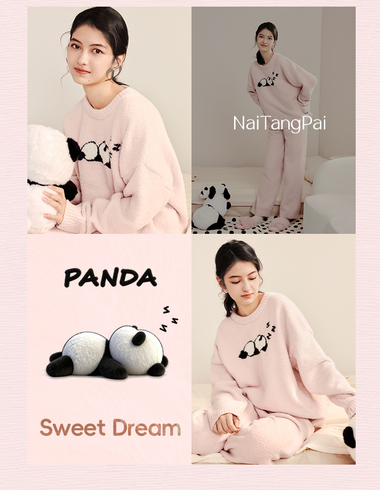 奶糖派甜梦熊圆领半边绒睡衣女保暖加绒秋冬抗静电可外穿家居服