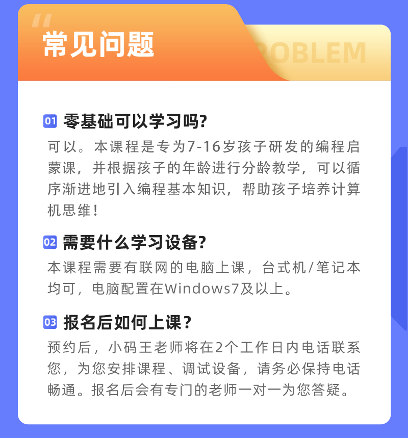 - 小码王少儿编程,课程适合7-16岁孩子学习,在图形化编程、Python代码编程等课程中,他们将能创造出游戏、软件、动画、故事等,成为走在前端的未来创作者。