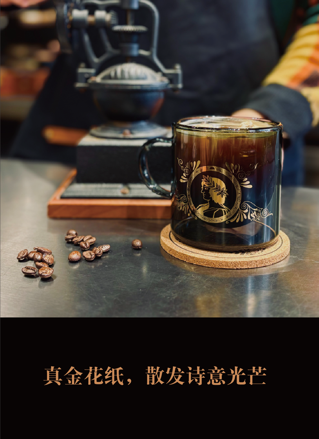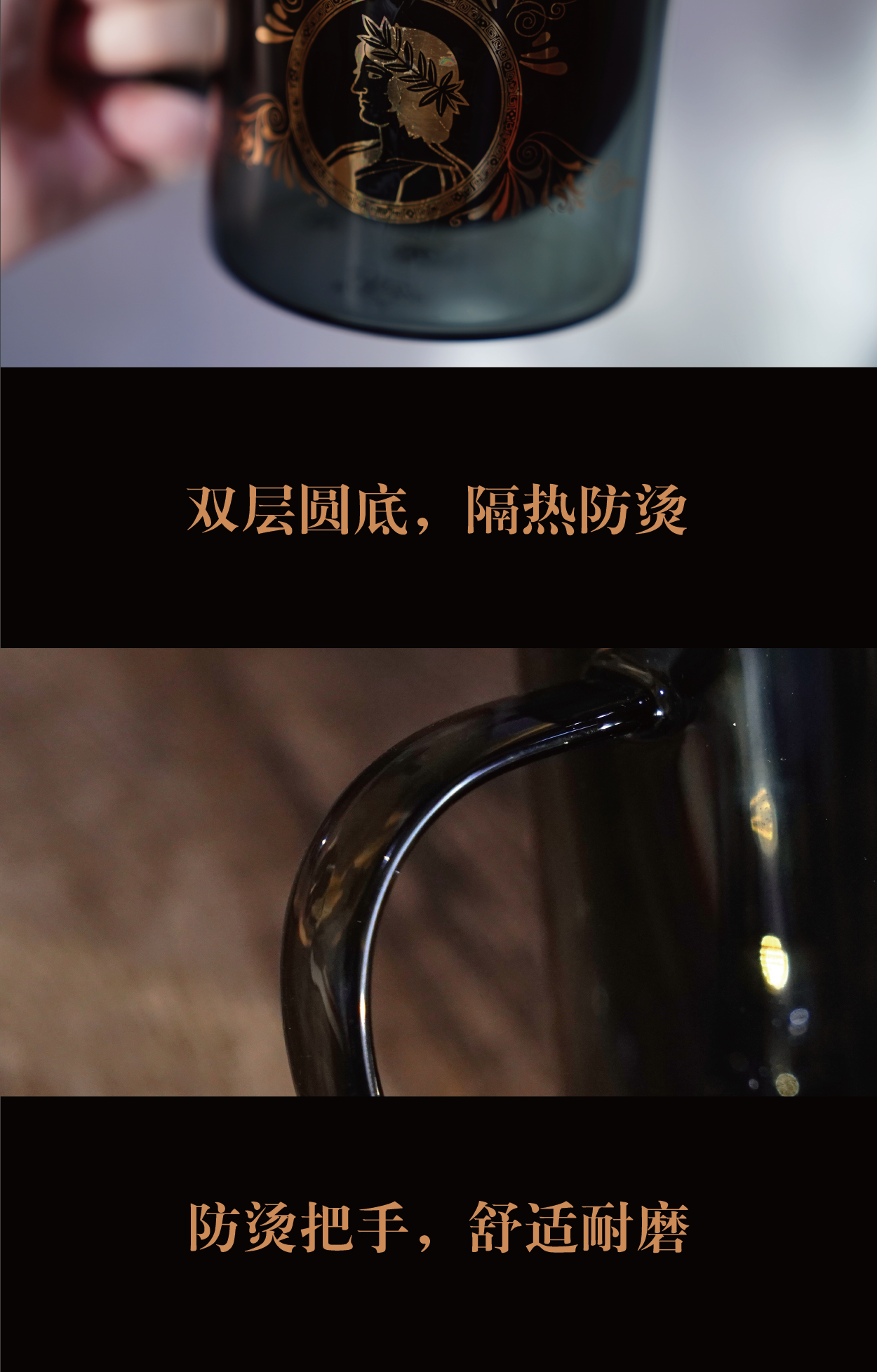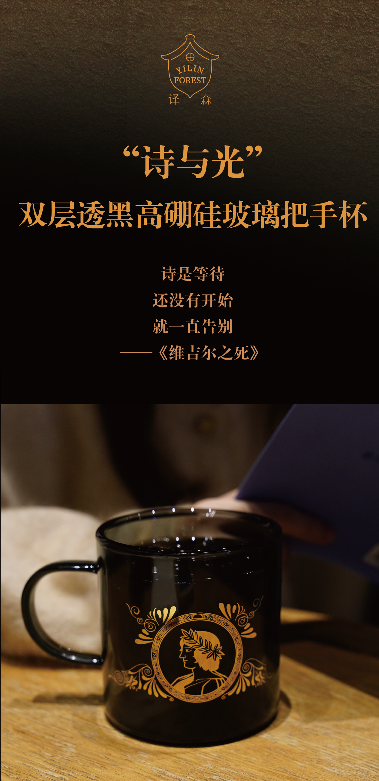 【译森文创】诗与光”双层透黑高硼硅玻璃把手杯