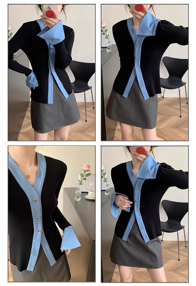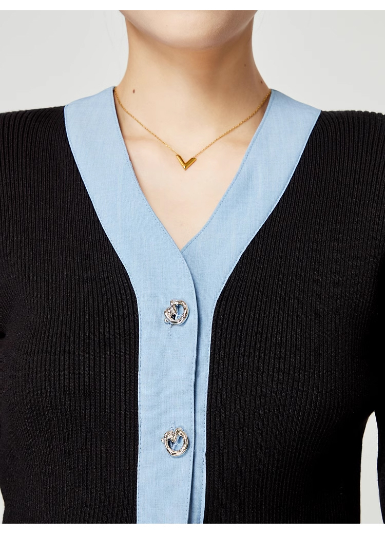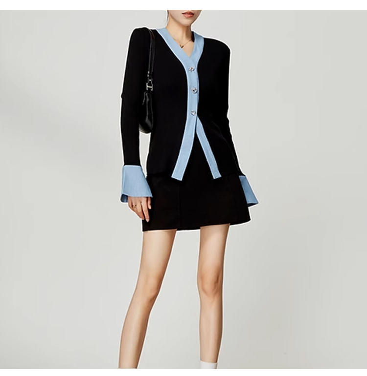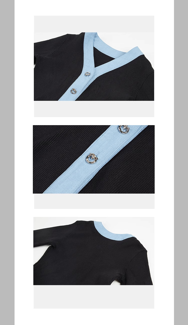 裁缝学苑AS144 V领撞色女装新款毛衣针织衫纸样开衫打版裁剪样板
