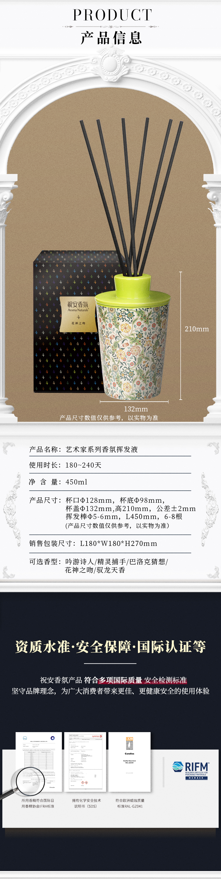 【春上新】9楼母婴生活馆 祝安香氛挥发液艺术家系列香氛挥发液卧室香薰香氛香薰450mL 吊牌价:359元 店庆价:199元