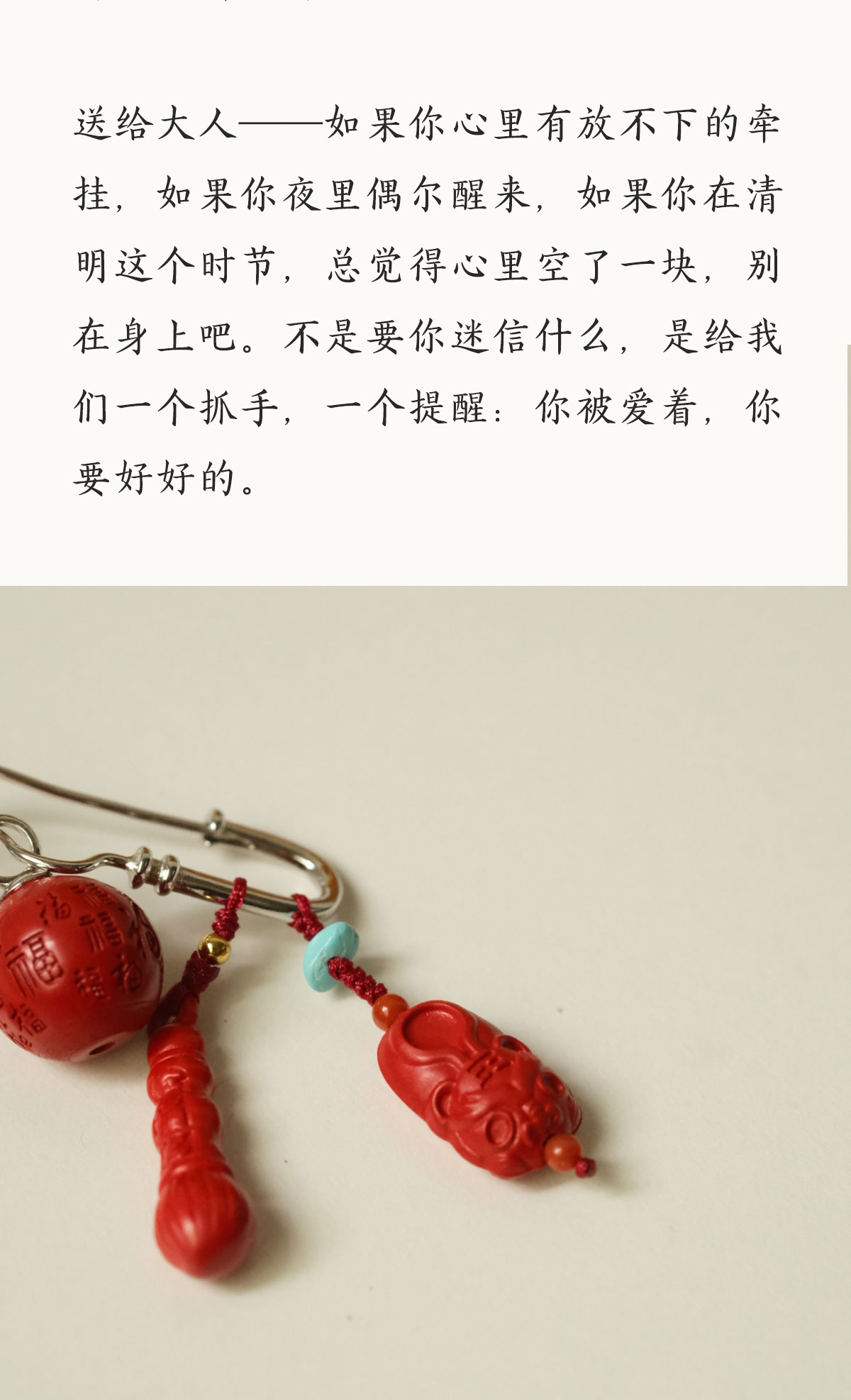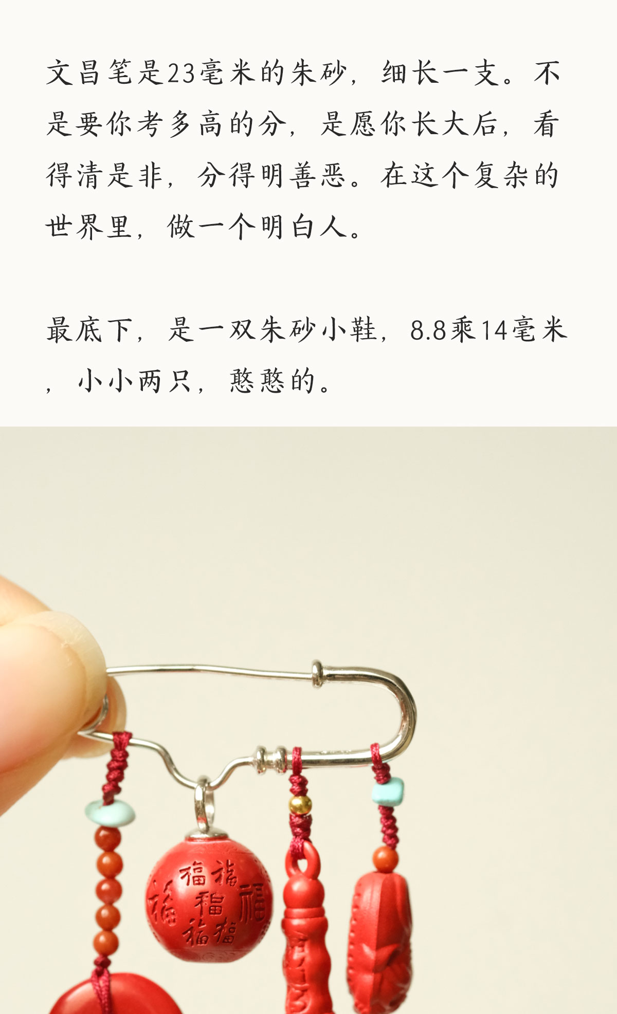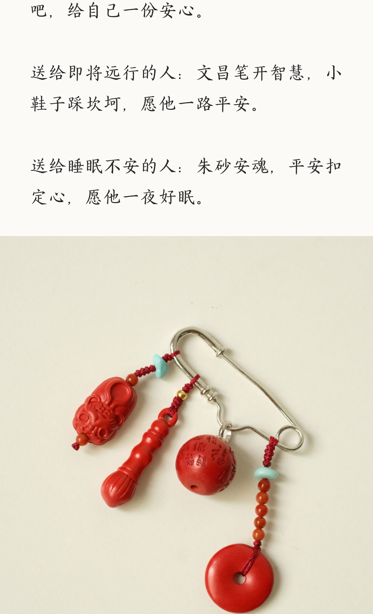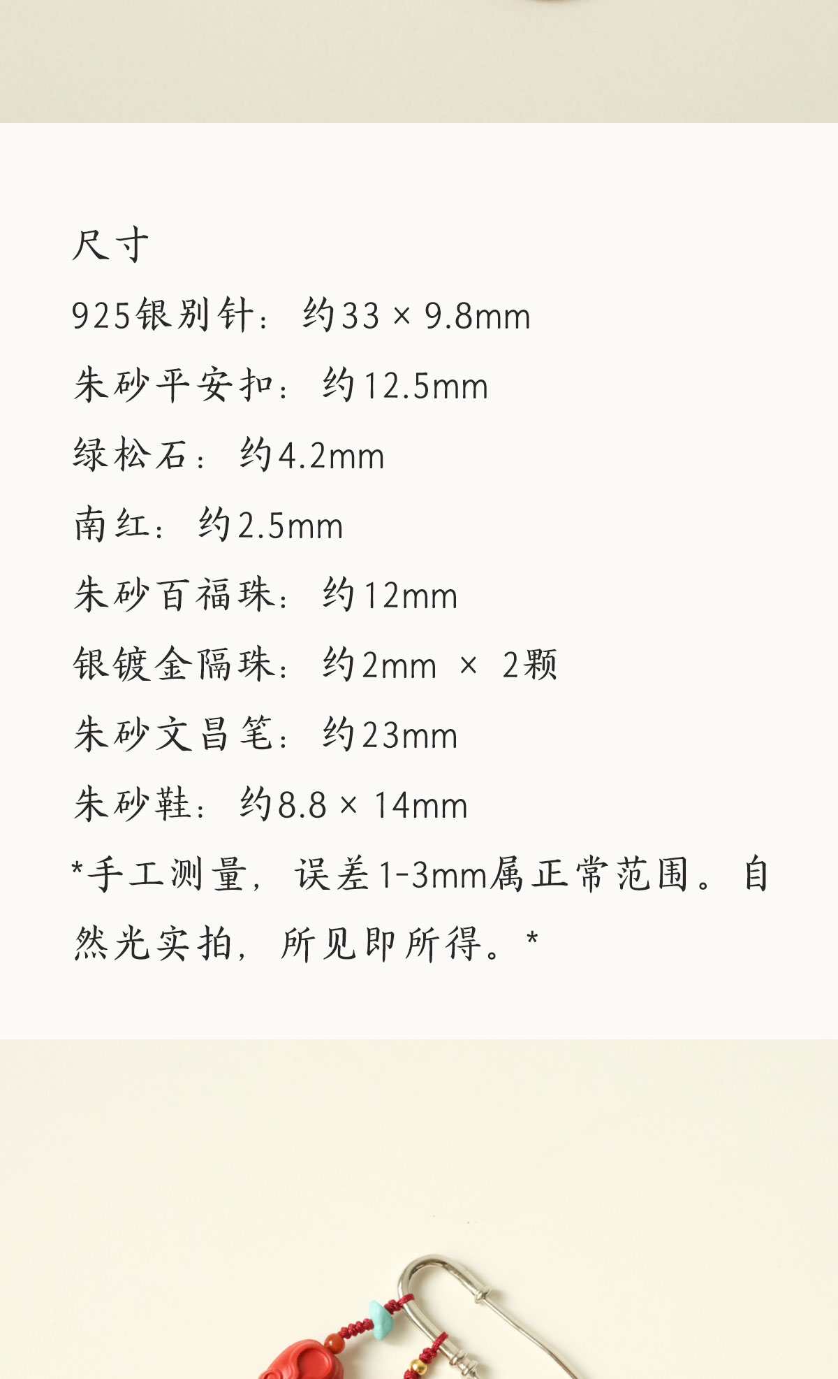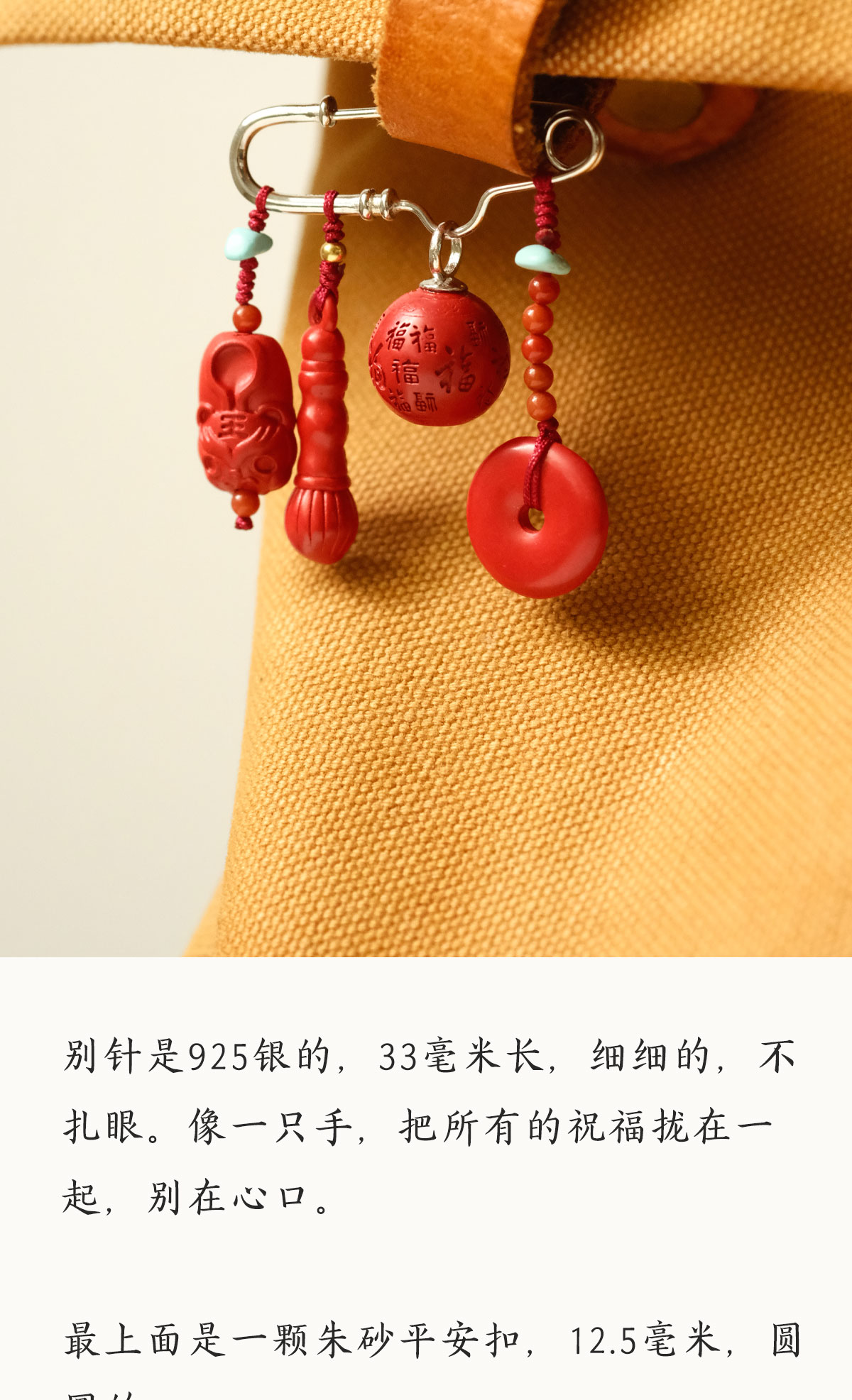 米马饰物 正宗朱砂银镀金胸针别针 把平安福气随身携带