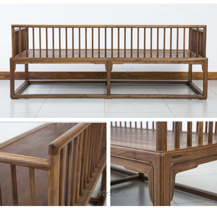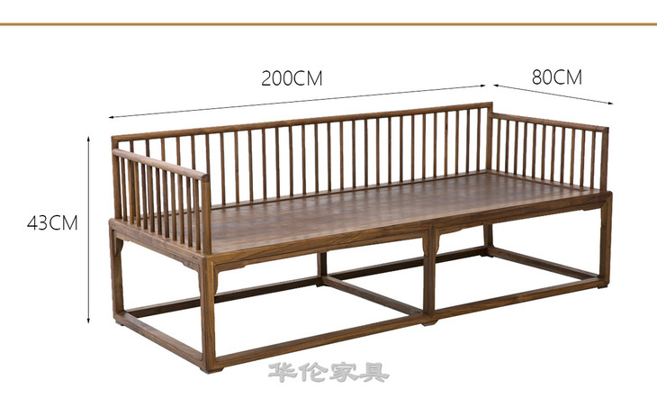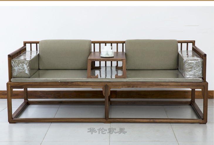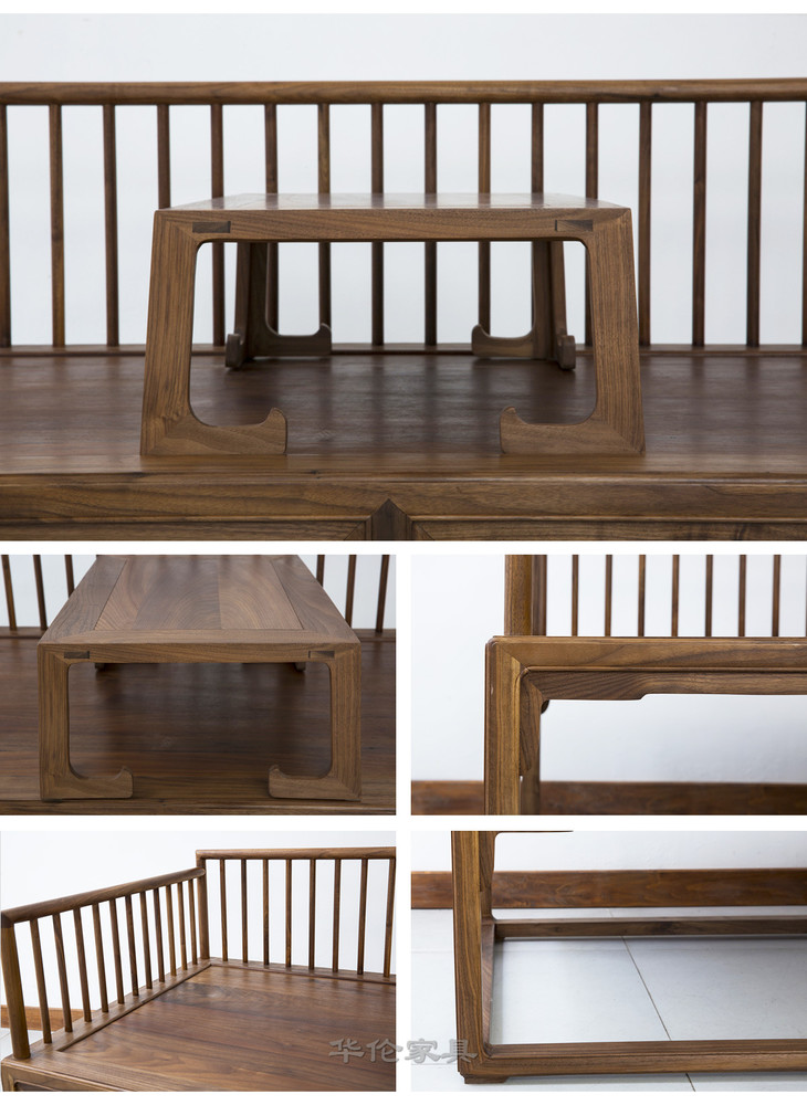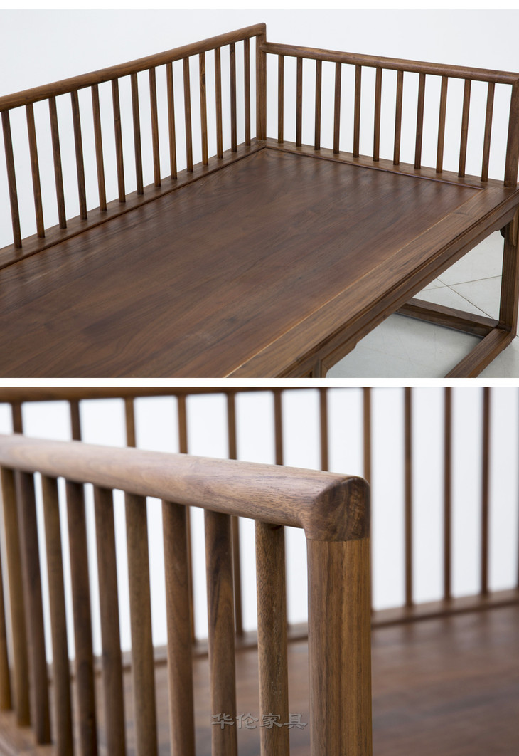 新仿黑胡桃木新中式罗汉床+炕桌(套)床榻休闲榻DXH16010007 Newly made Black walnut wood Reproduction Bed with tea table