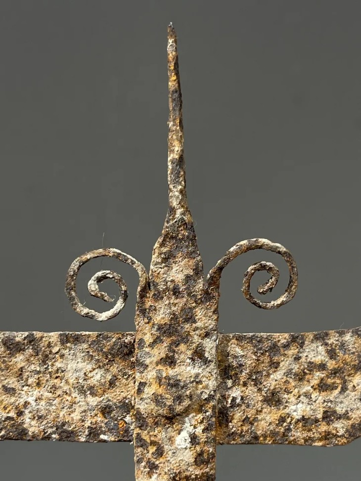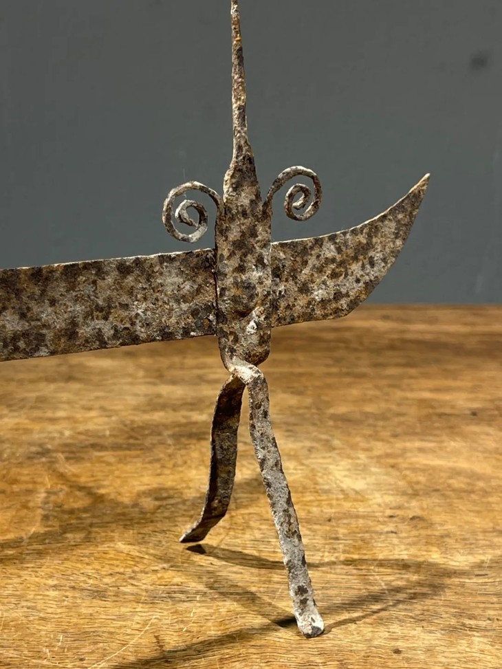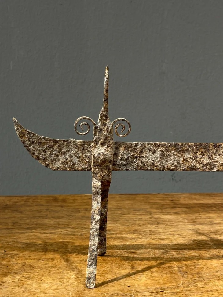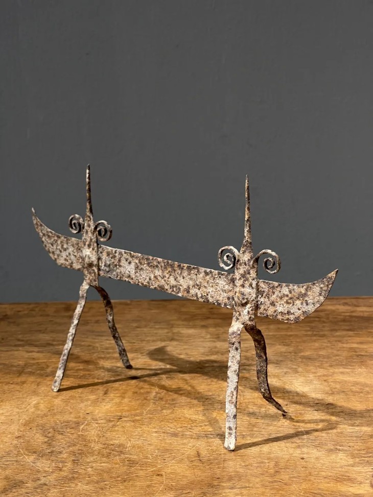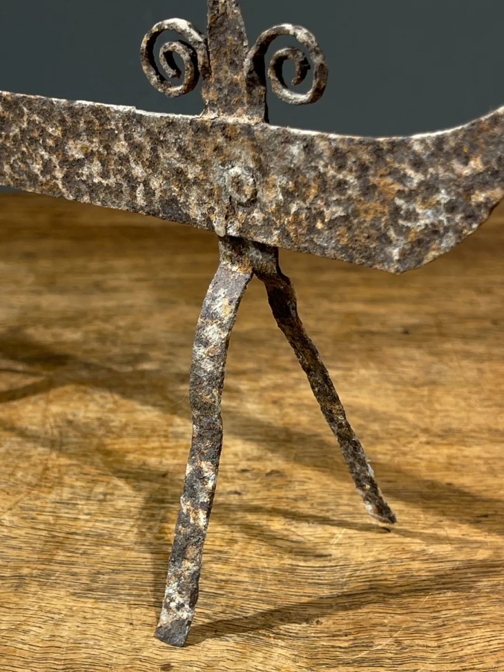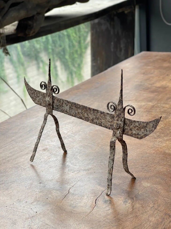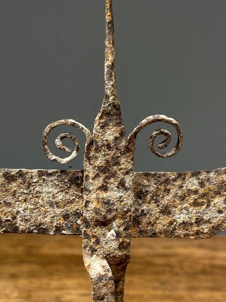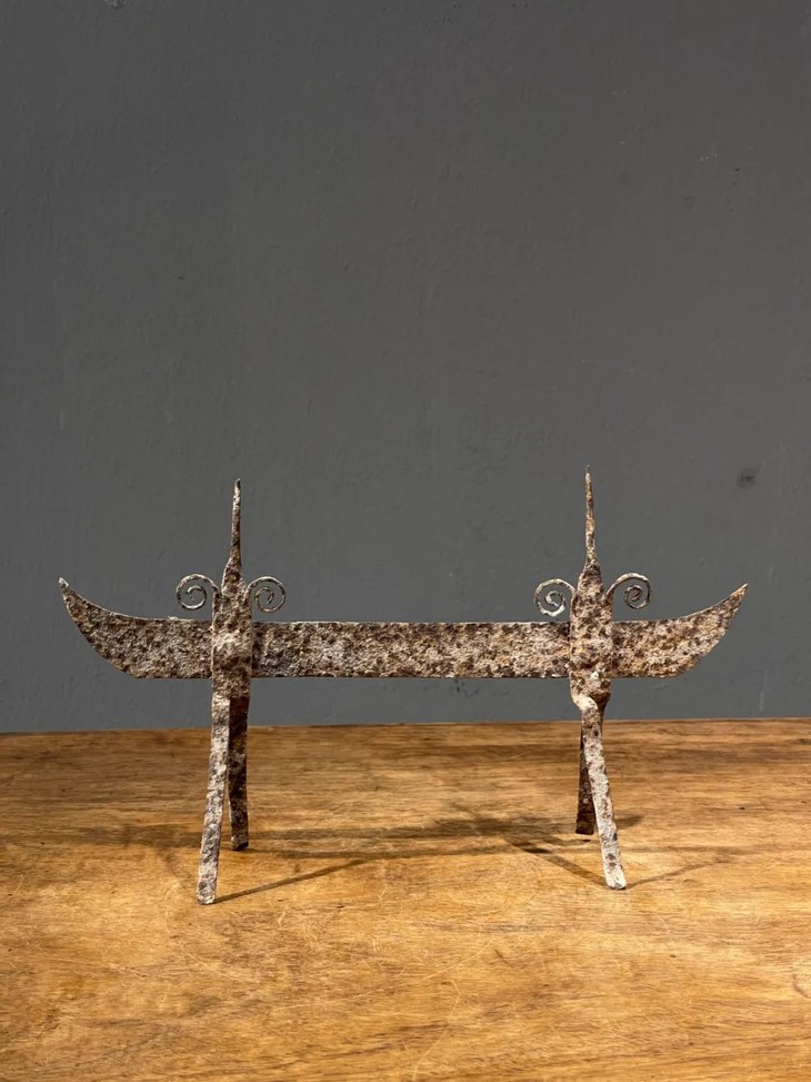 此老铁拱门型蜡烛台,设计精巧,形式简约优雅,历几代人的使用产生温润的包浆皮壳与自然铁锈,置于任何空间均可增添气质品味。此老铁拱门型蜡烛台,除经年使用產生的细微磨痕与磕碰痕外,保存完好。