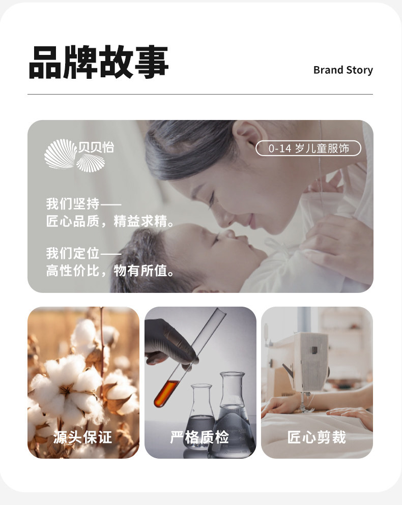 贝贝怡专注0-6岁婴幼儿服饰,坚持安全、柔软、舒适的产品理念,为千万中国家庭提供超高品质、安全可靠的婴幼儿服饰产品,妈妈放心,宝宝开心!