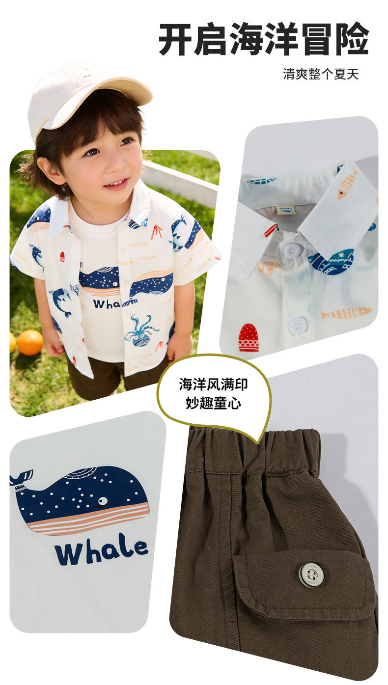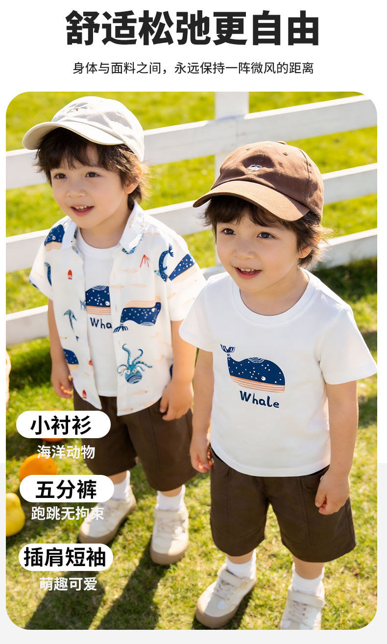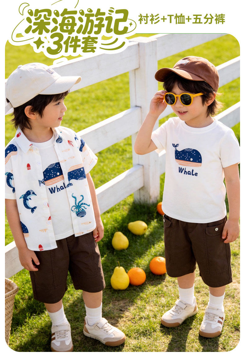 贝贝怡宝宝泳衣套装儿童泳裤男童泳帽中小童泳装两件套速干游泳裤222P2450