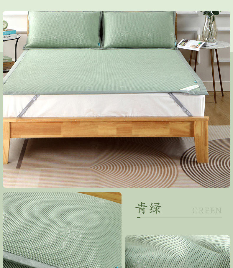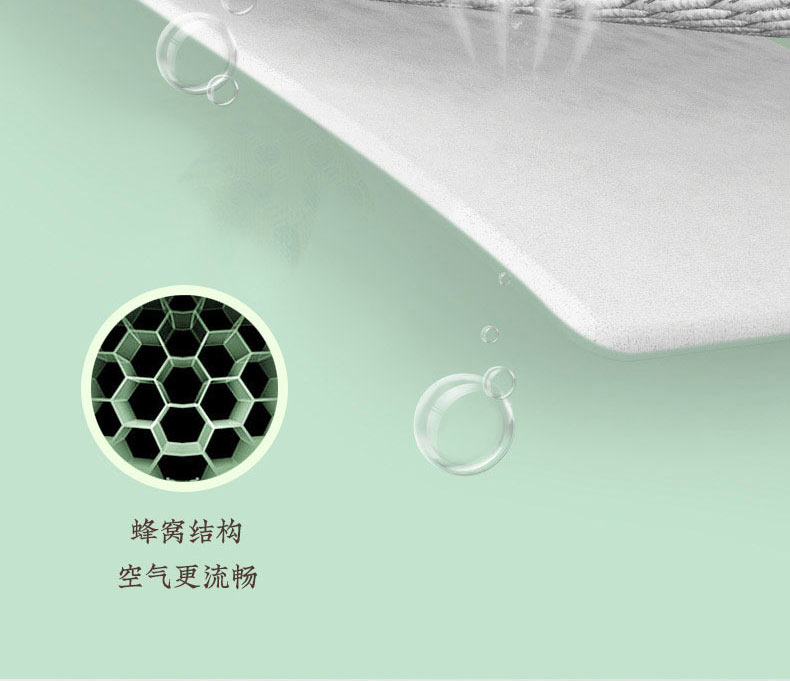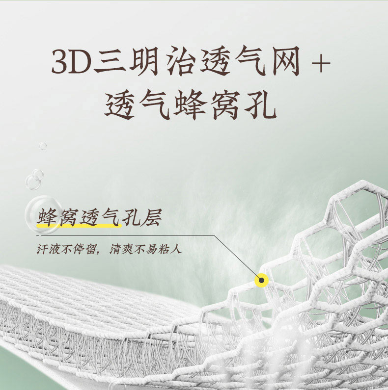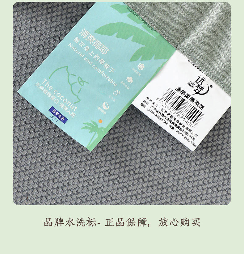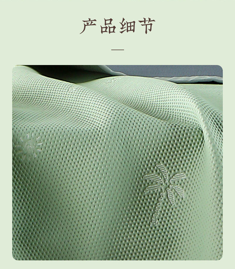 1、 采用370g/平方高分子凉豆豆面料,聚乙烯乙论面料自带凉感特性,夹层加捻柔软丝,结合反面3D透气孔,触感清凉的同时又软糯舒弹,给睡眠来一个绵绵冰般的舒适体验