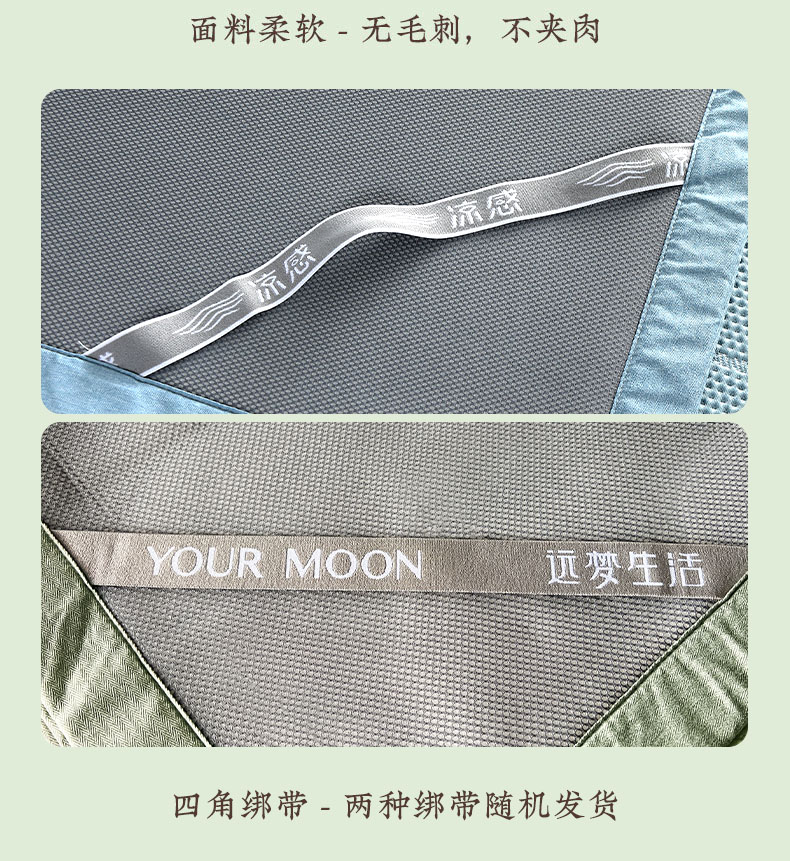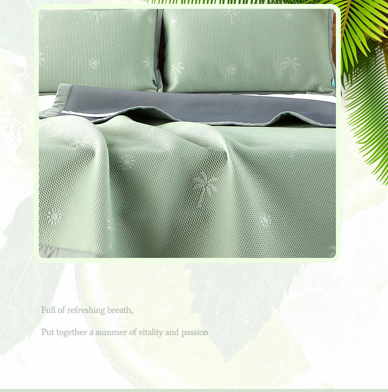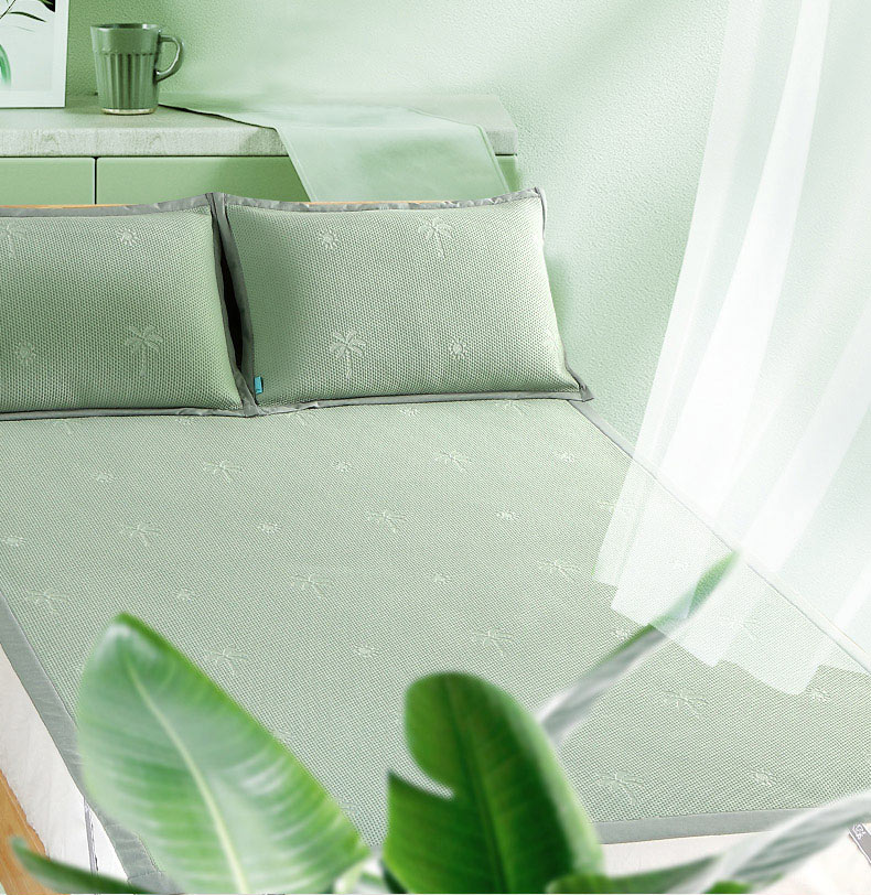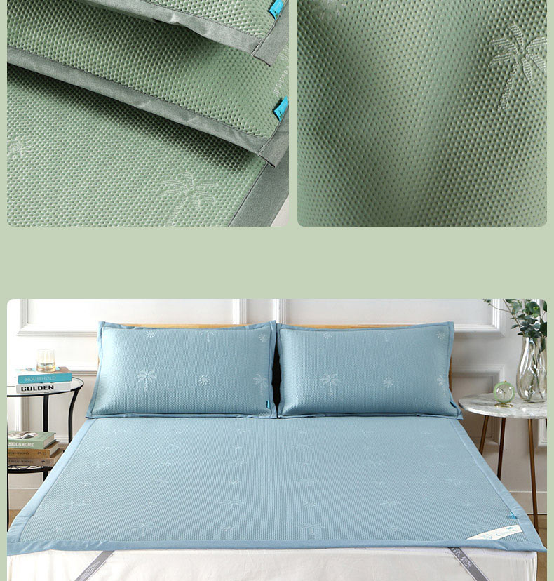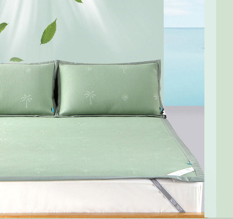 1、 采用370g/平方高分子凉豆豆面料,聚乙烯乙论面料自带凉感特性,夹层加捻柔软丝,结合反面3D透气孔,触感清凉的同时又软糯舒弹,给睡眠来一个绵绵冰般的舒适体验