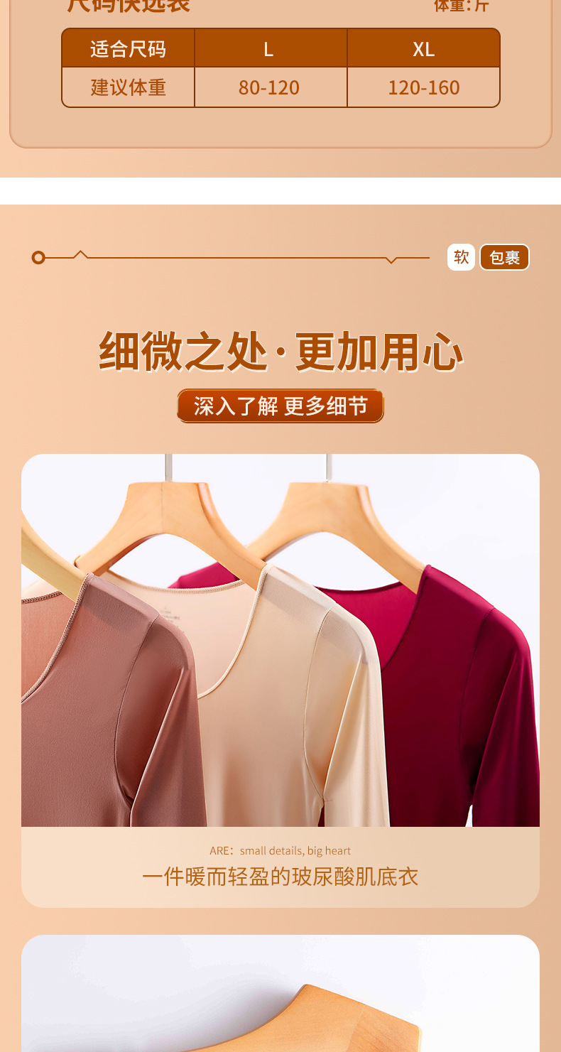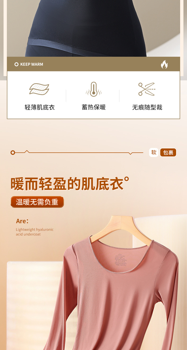 轻薄肌底衣 秋冬保暖内衣女士套装美肤衣 丝滑裸感 百搭修身显瘦 内搭打底衫可外穿 舒适无痕透气高弹长袖超薄款