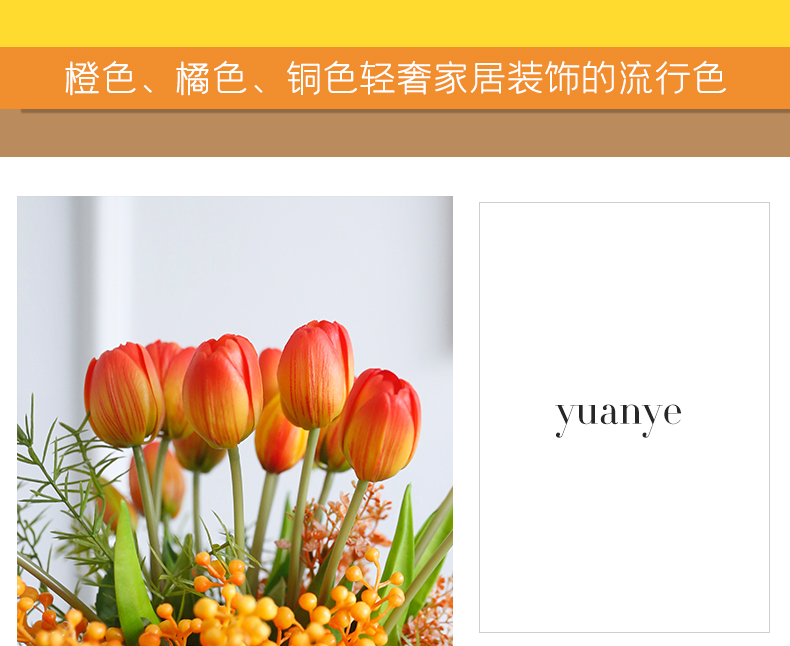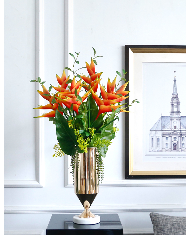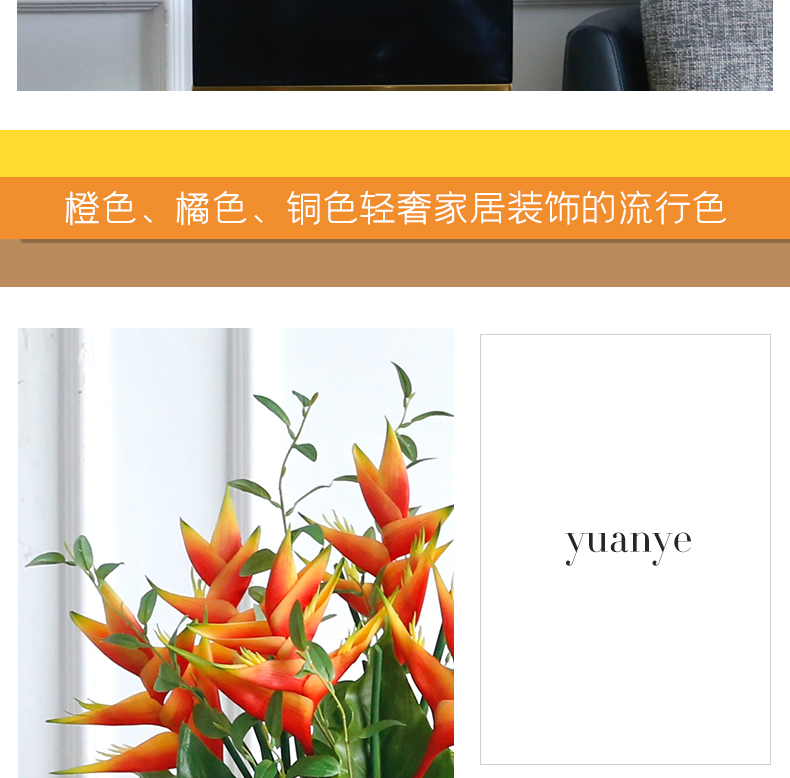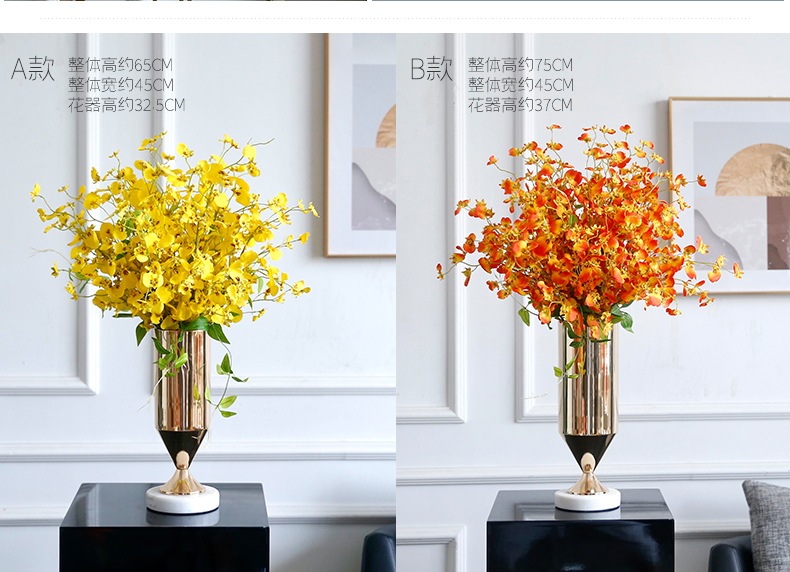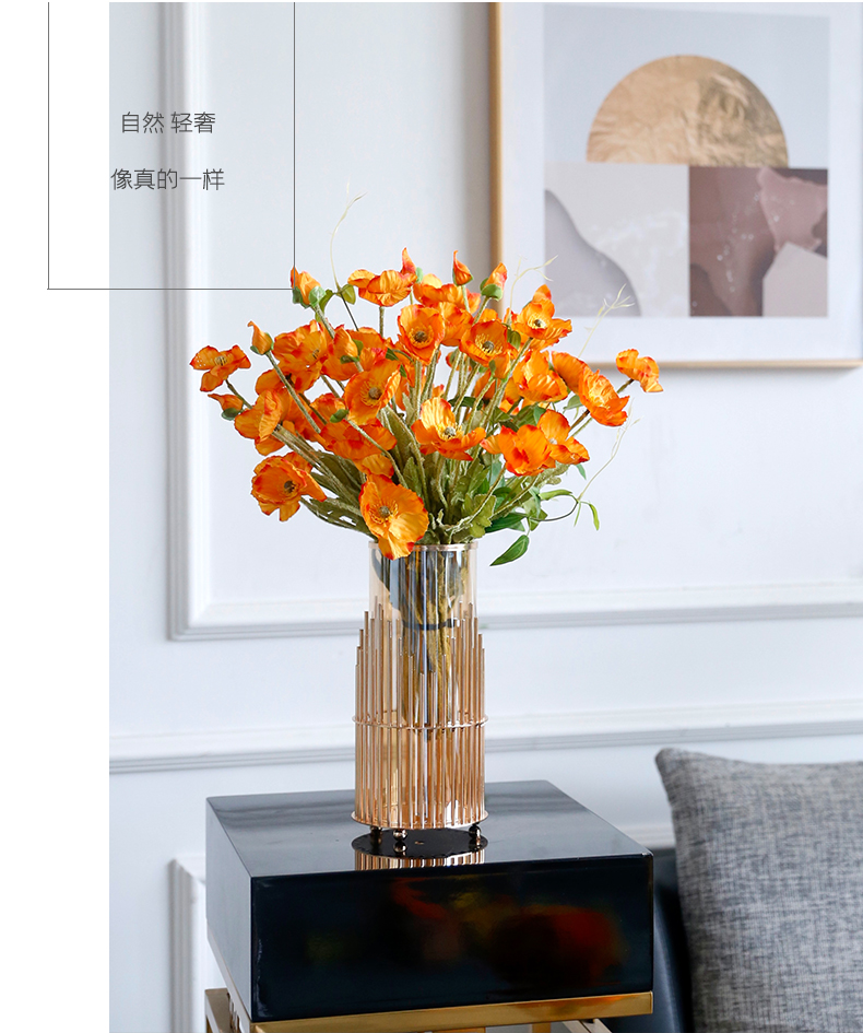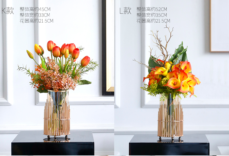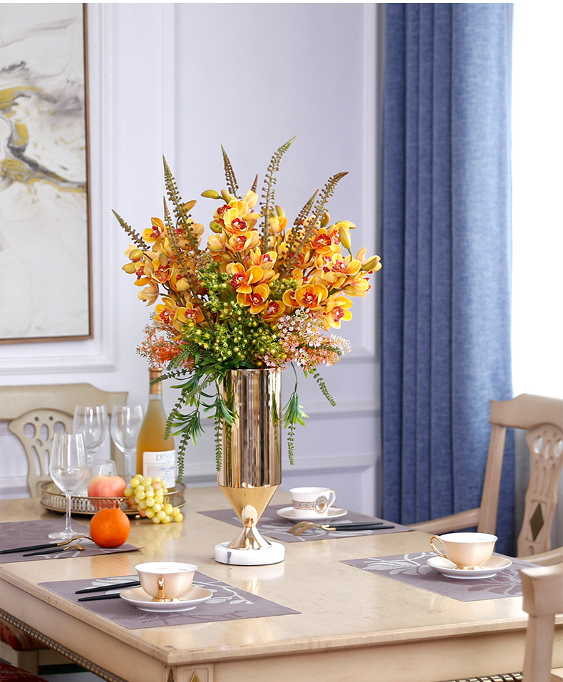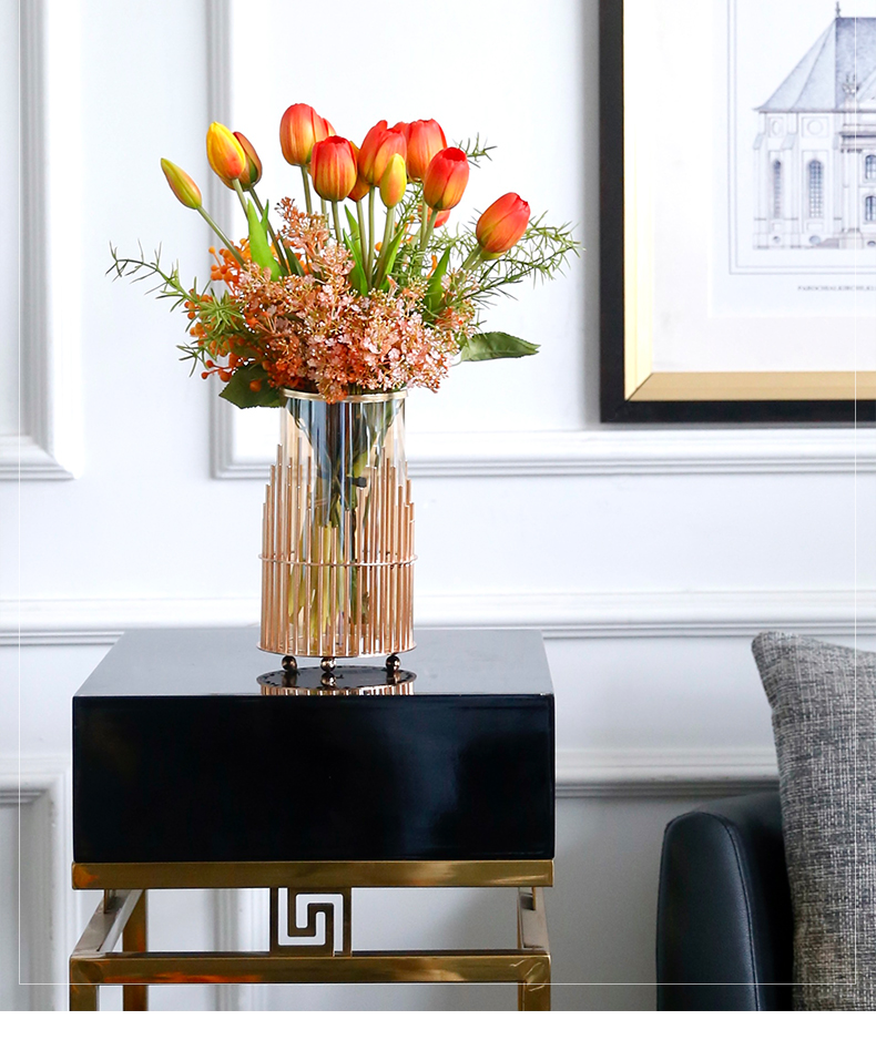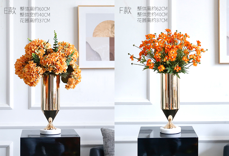 高档轻奢仿真花假花摆件餐桌酒店茶几橘橙金铜色花器瓶样板板房间