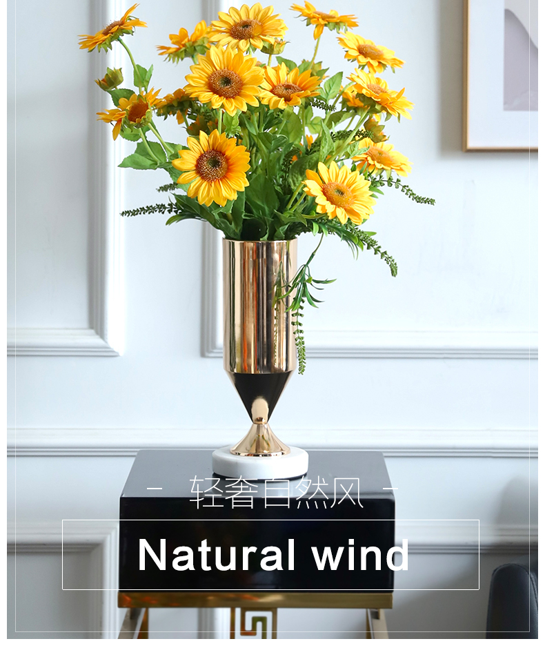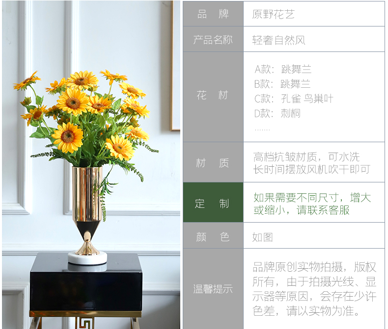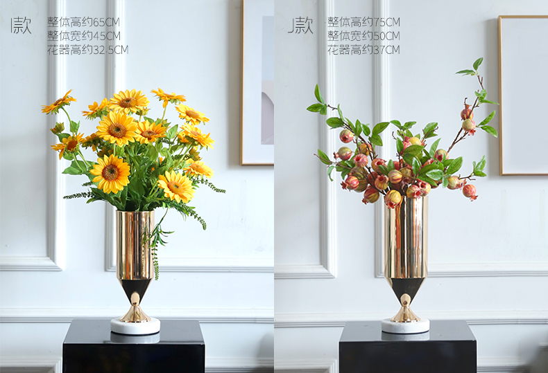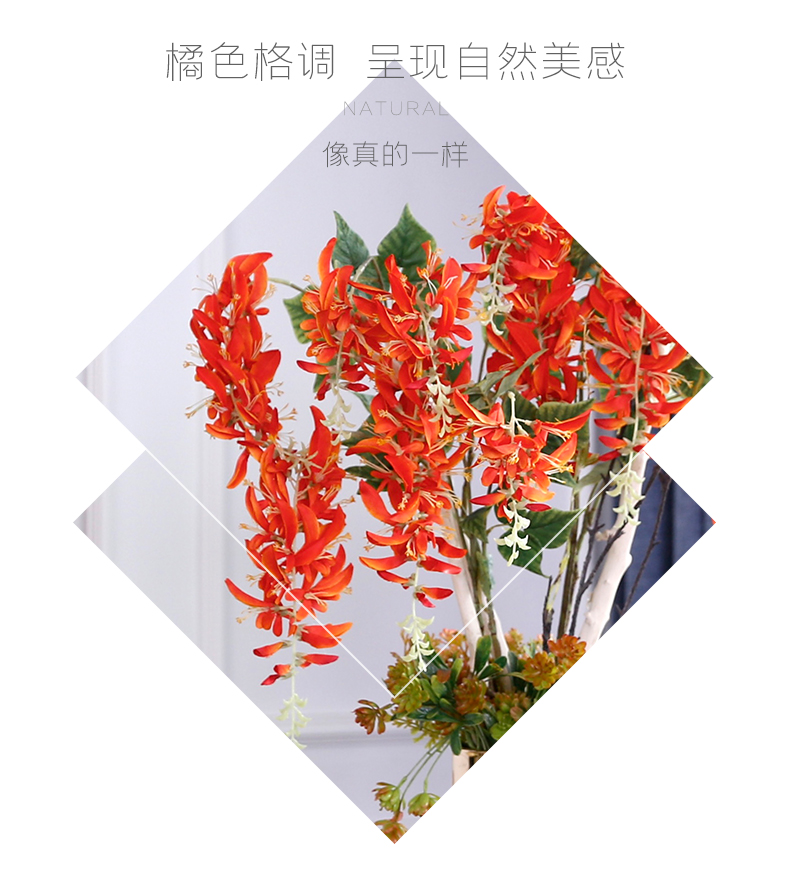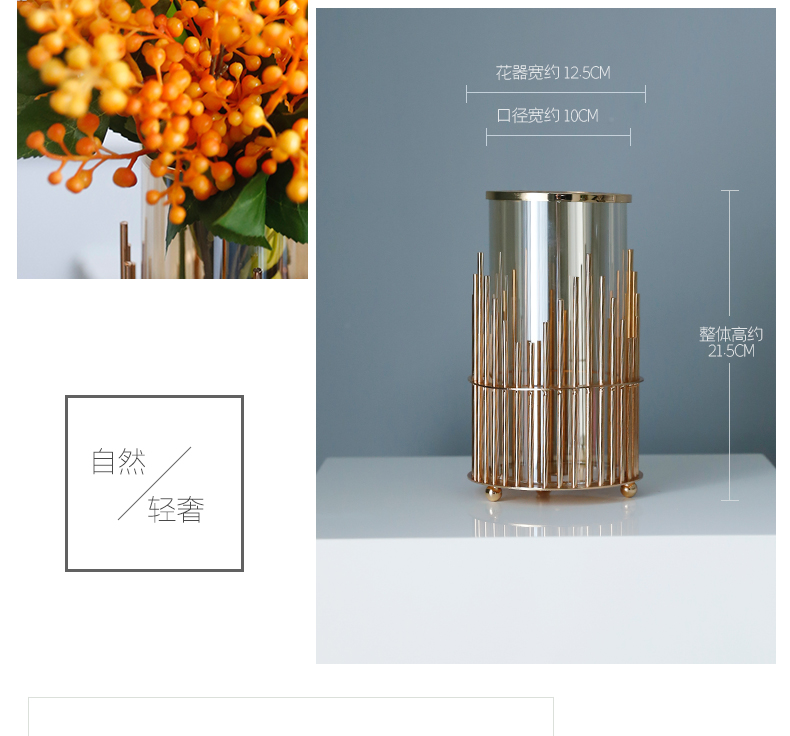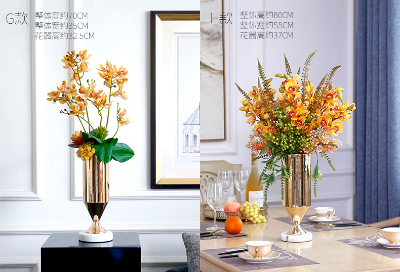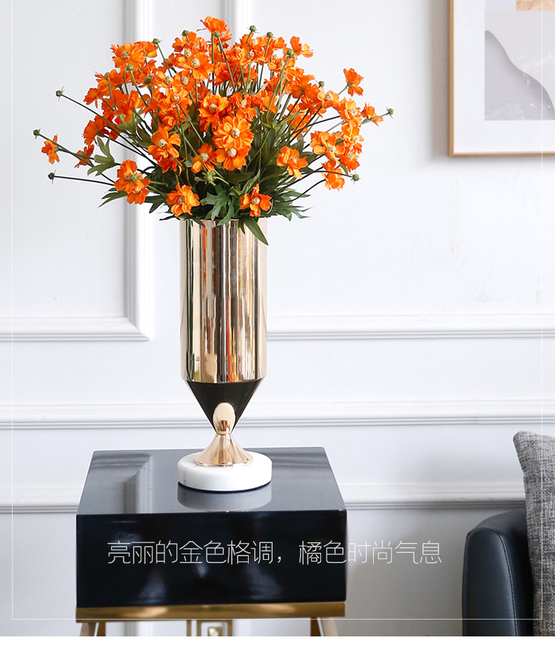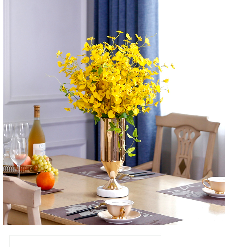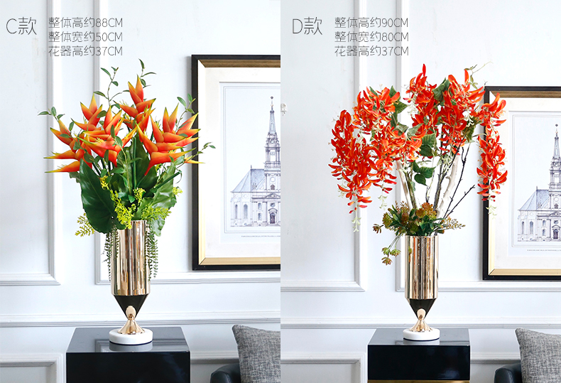 高档轻奢仿真花假花摆件餐桌酒店茶几橘橙金铜色花器瓶样板板房间