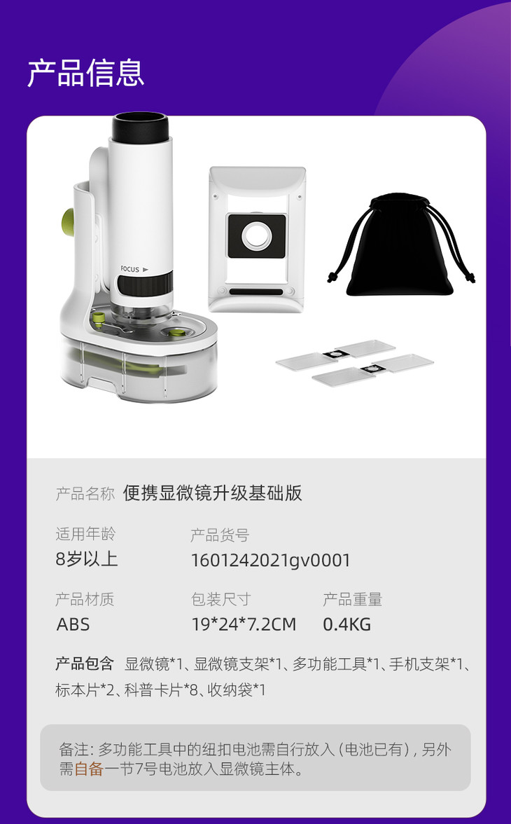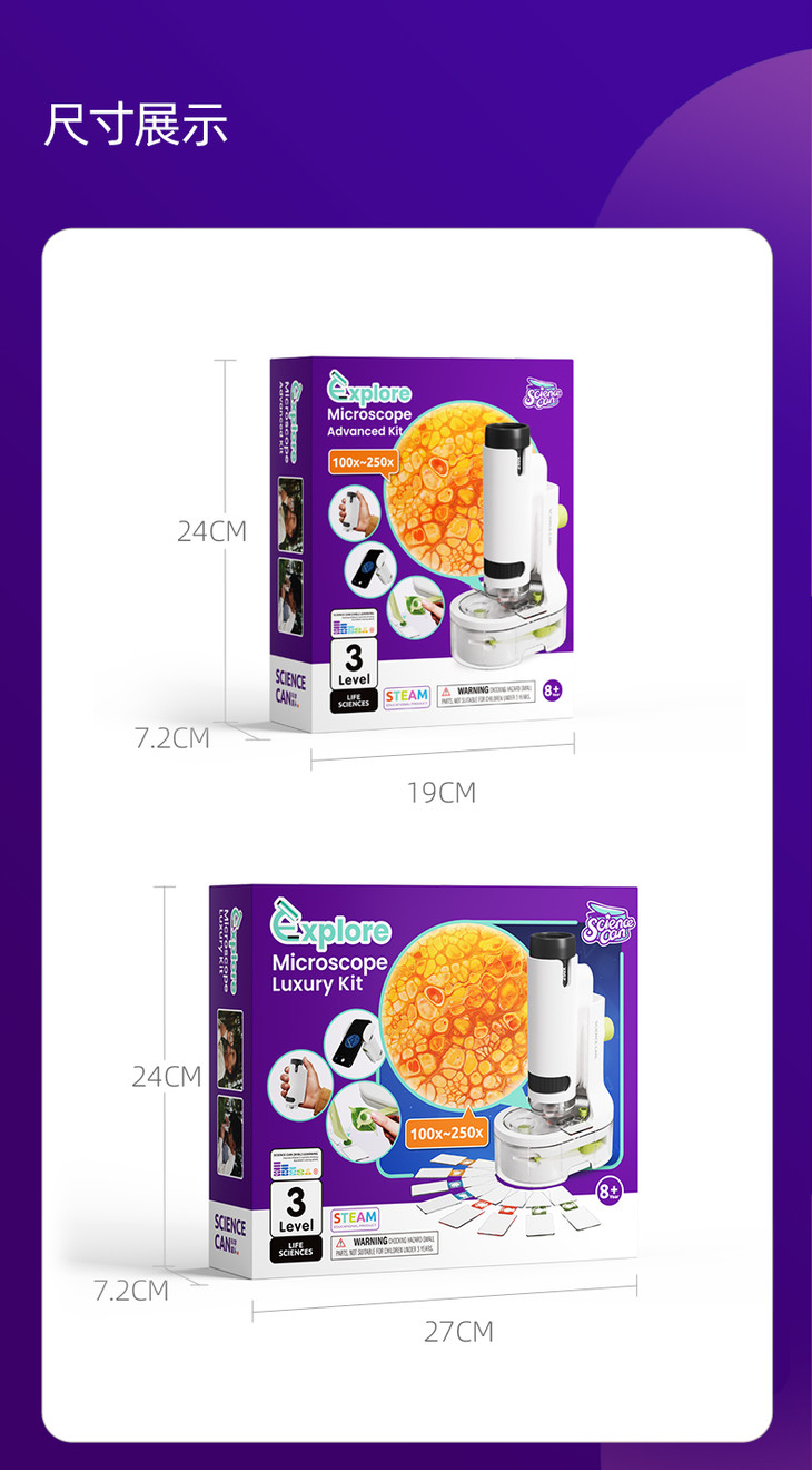 [屁侠推荐]Sciencecan科学罐头 三合一便捷式 250倍光学手持 可DIY标本 开启户外微观之旅 二代升级款显微镜 超级套装