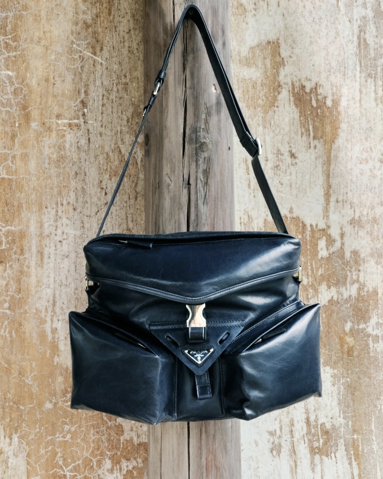 独家!随便出入专柜的款!油蜡牛皮越用越有质感!!!新款普拉达走秀新款油蜡皮机车包单肩斜挎包