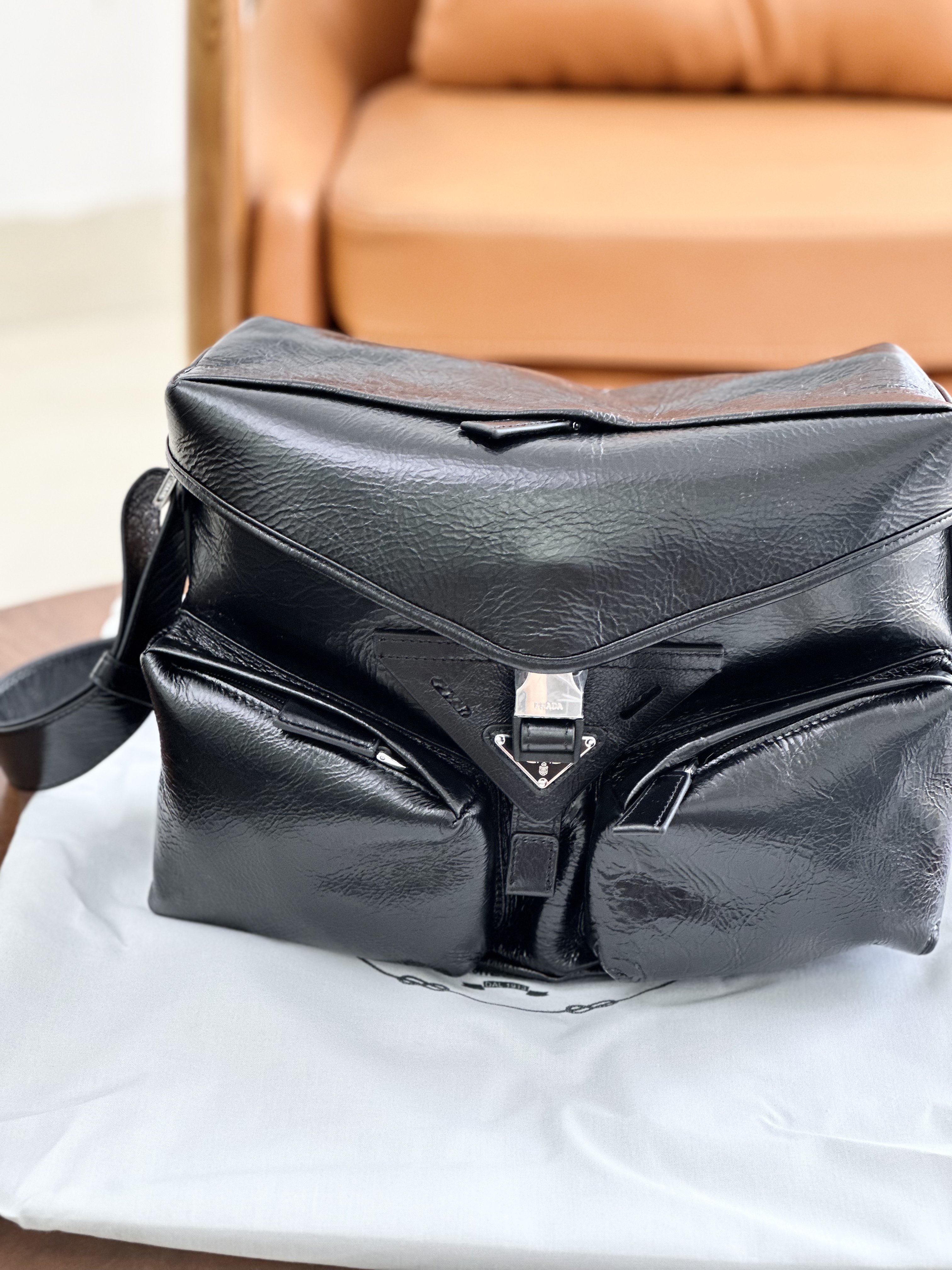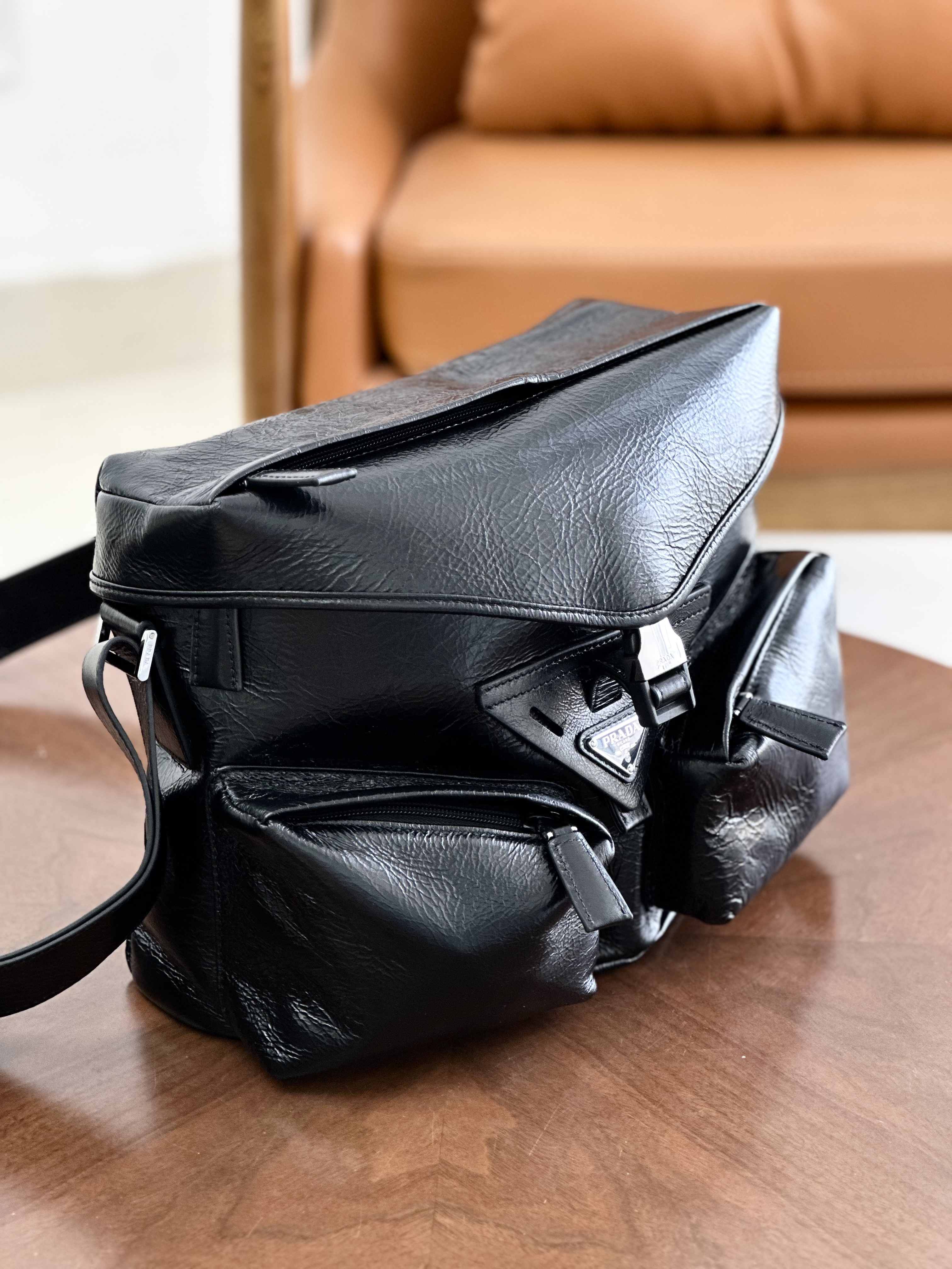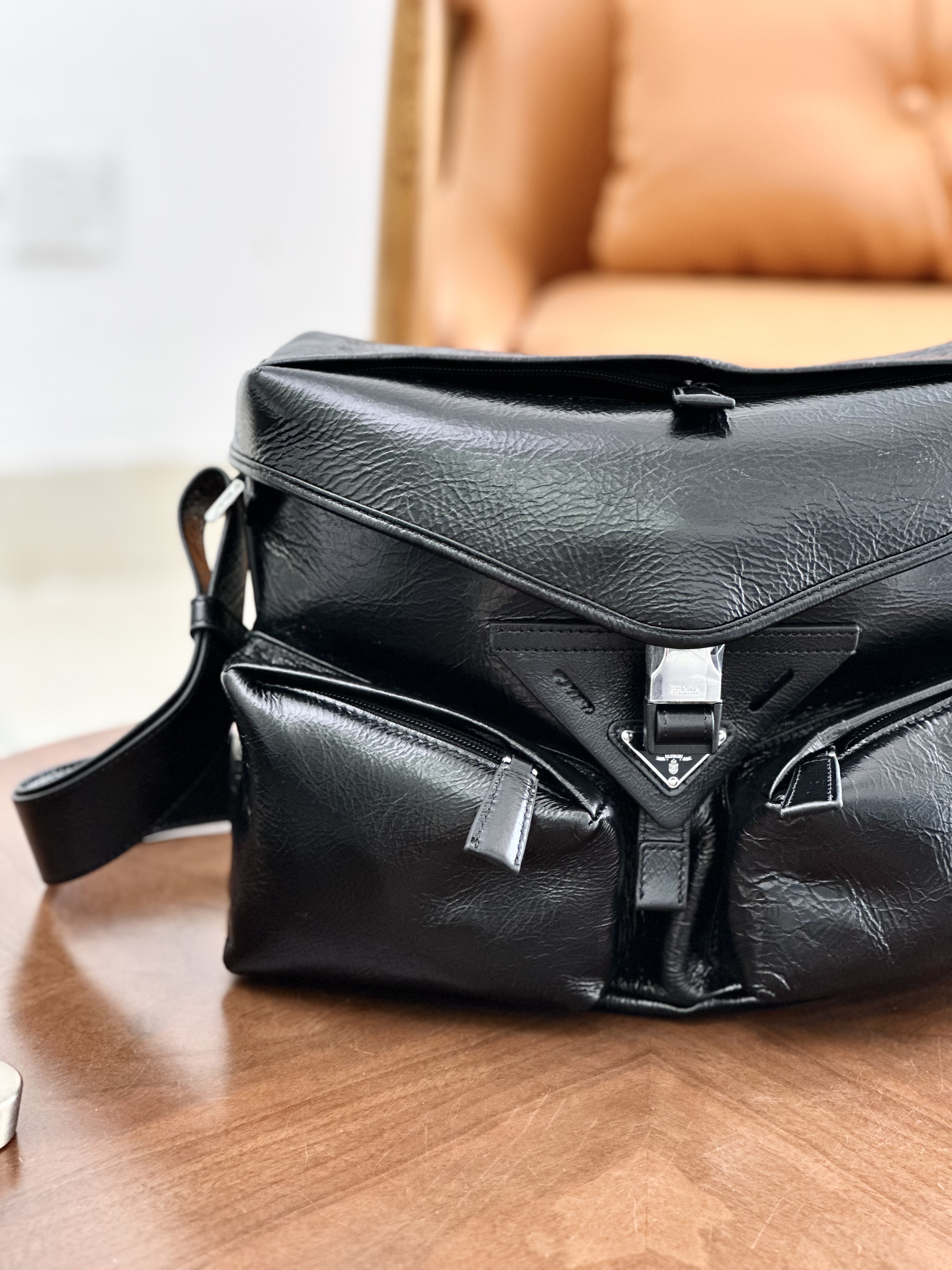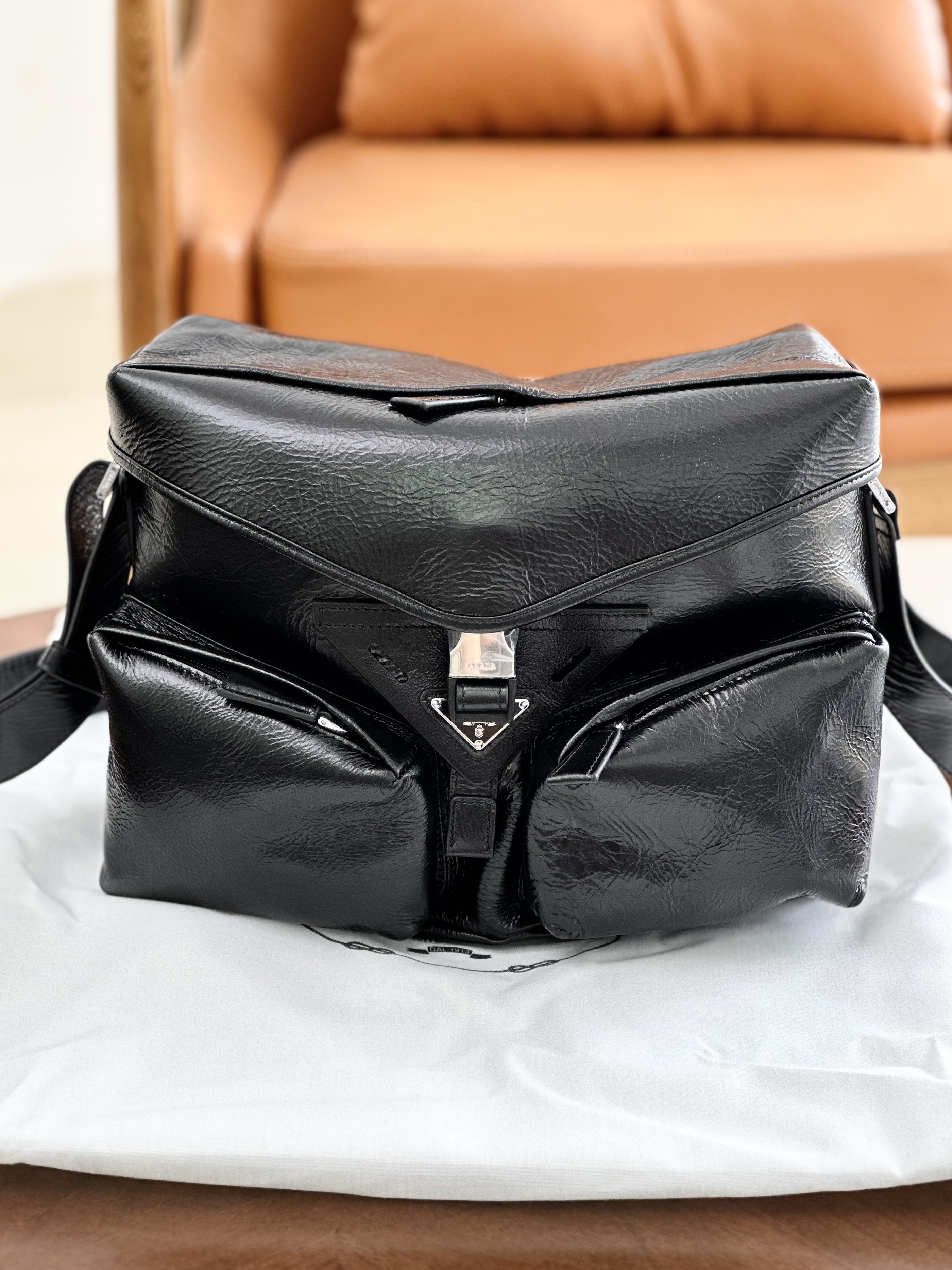 只有12个!独家!!油蜡牛皮!随便出入专柜!新款普拉达走秀新款 油蜡皮机车包单肩斜挎包