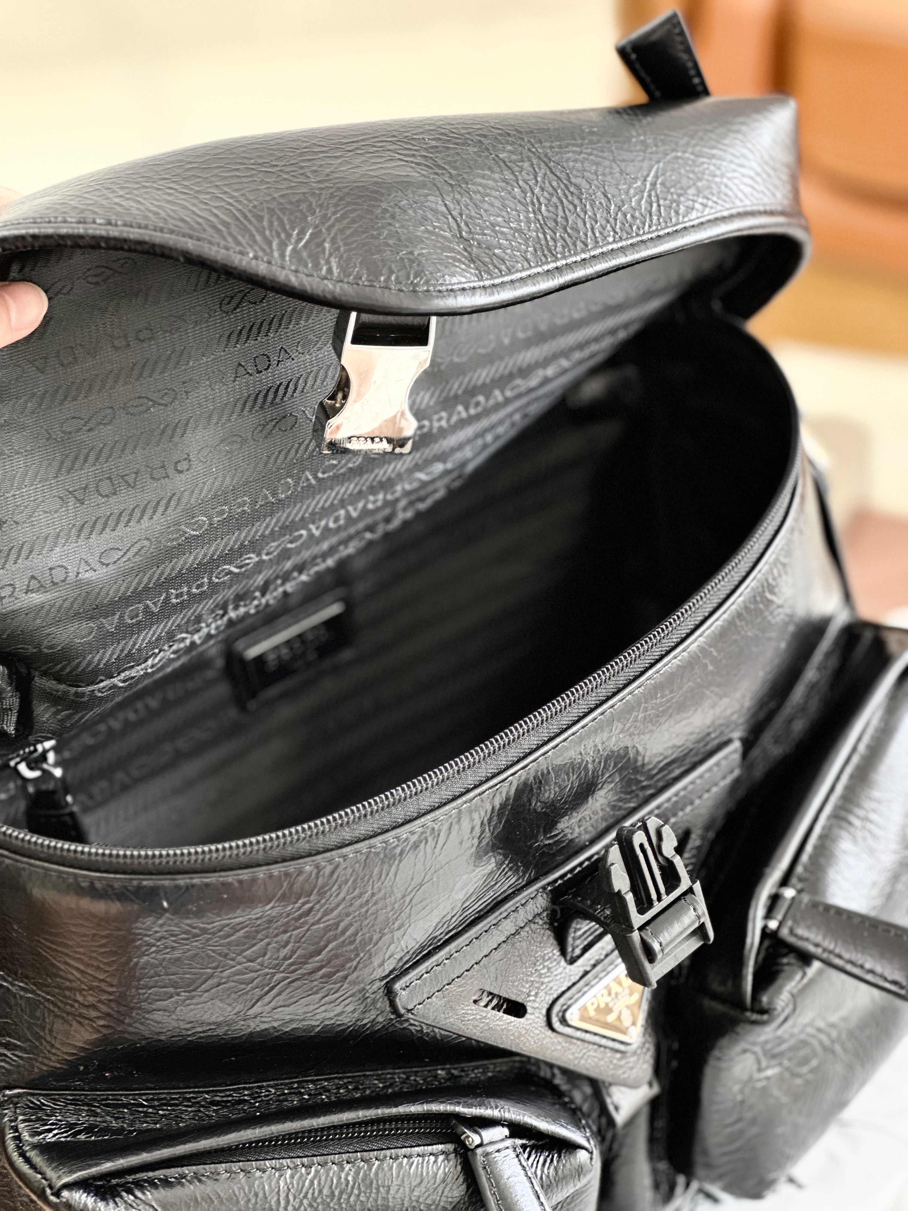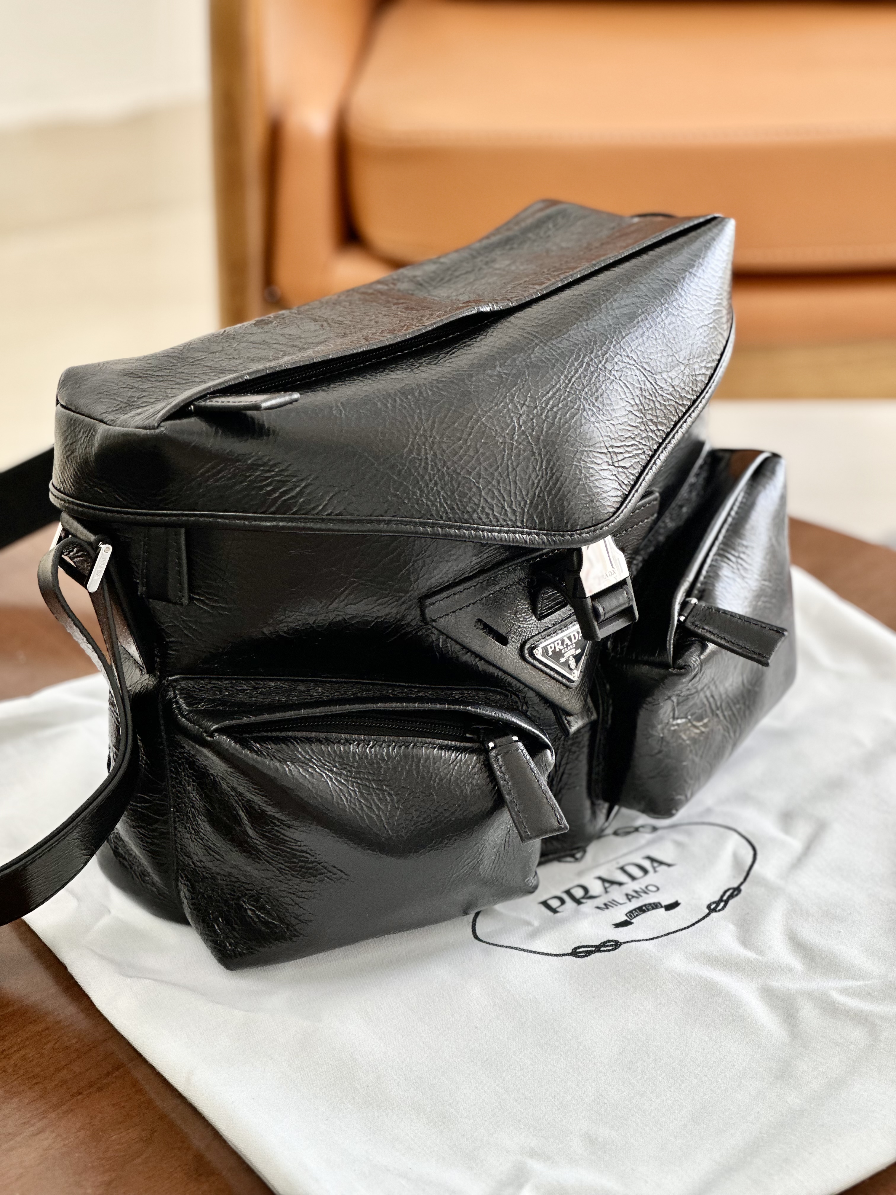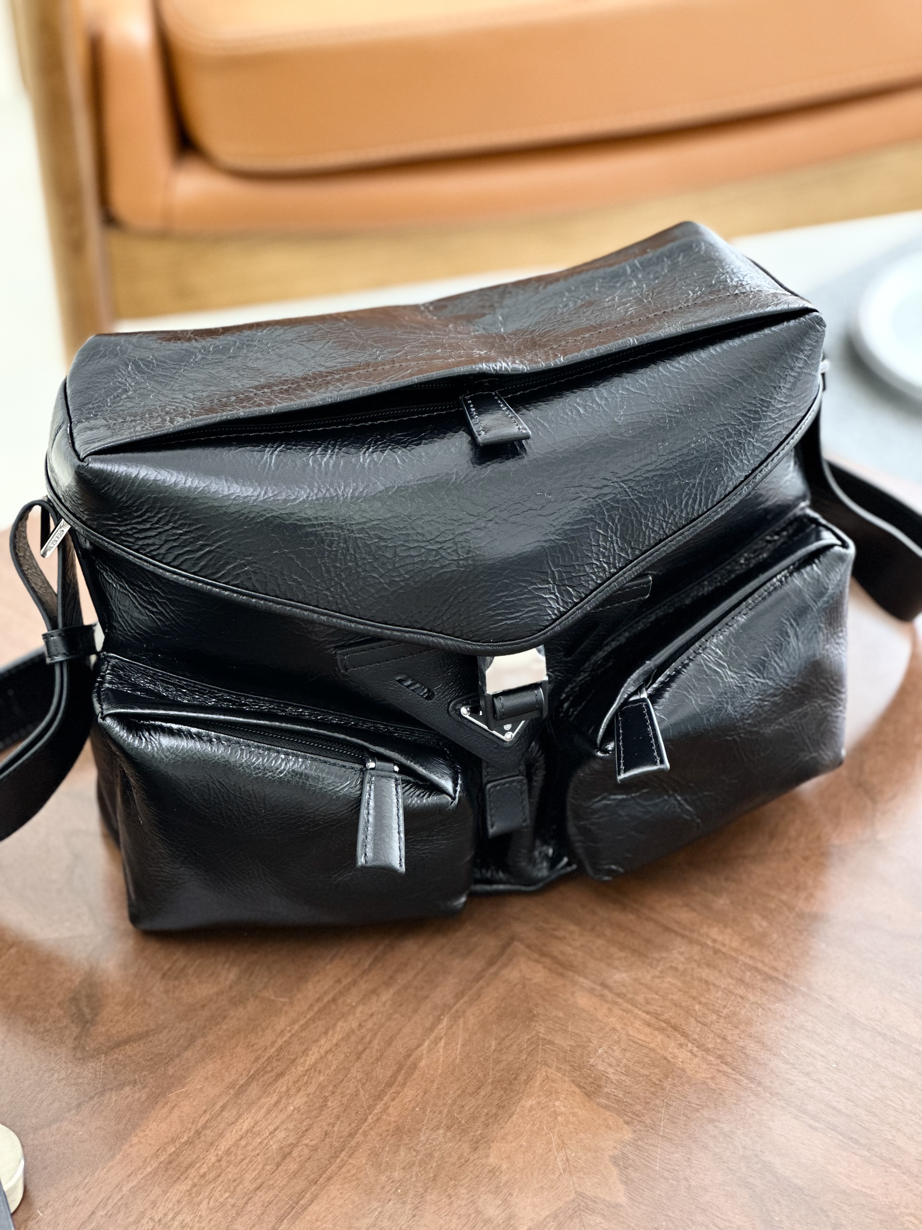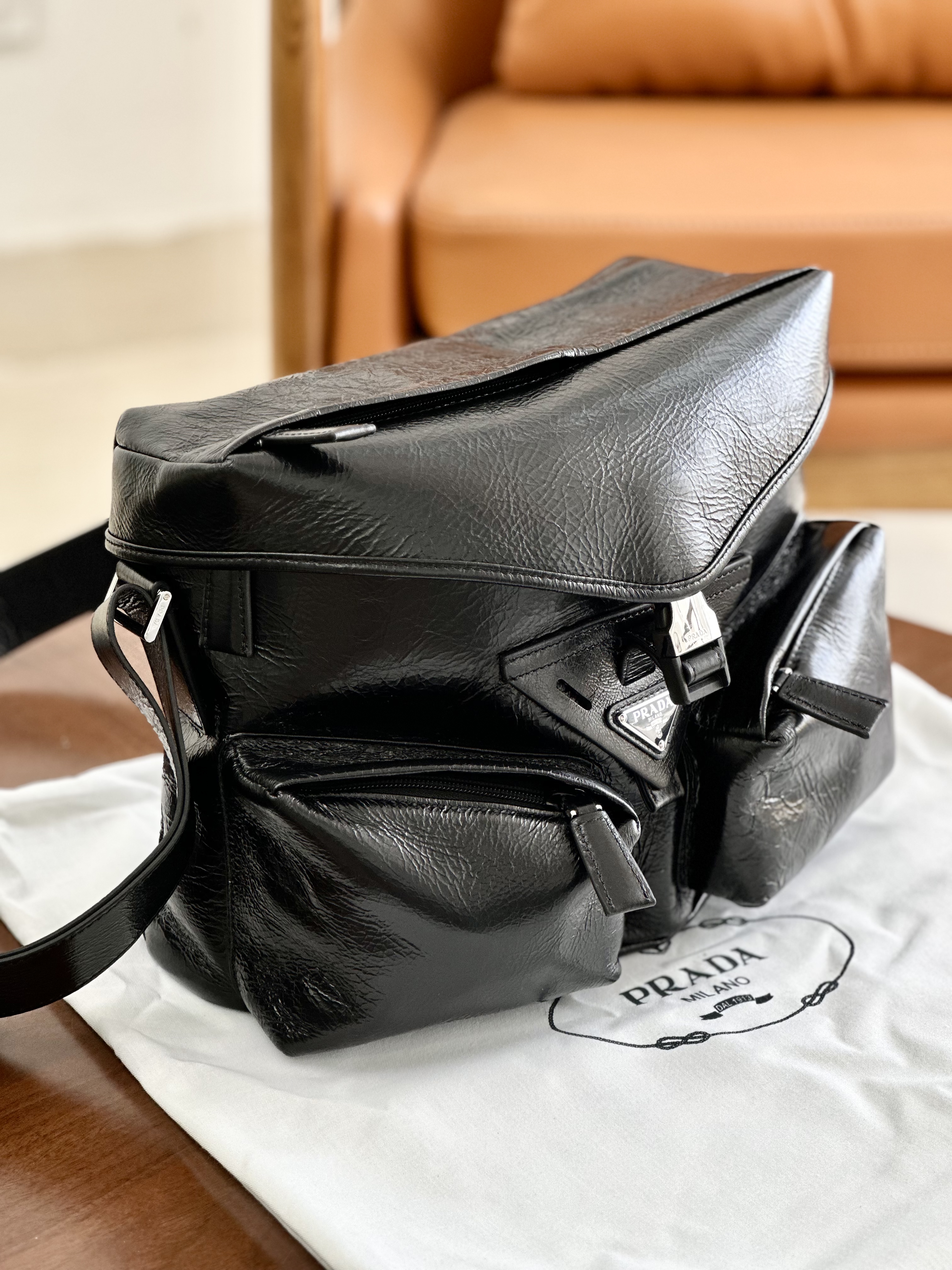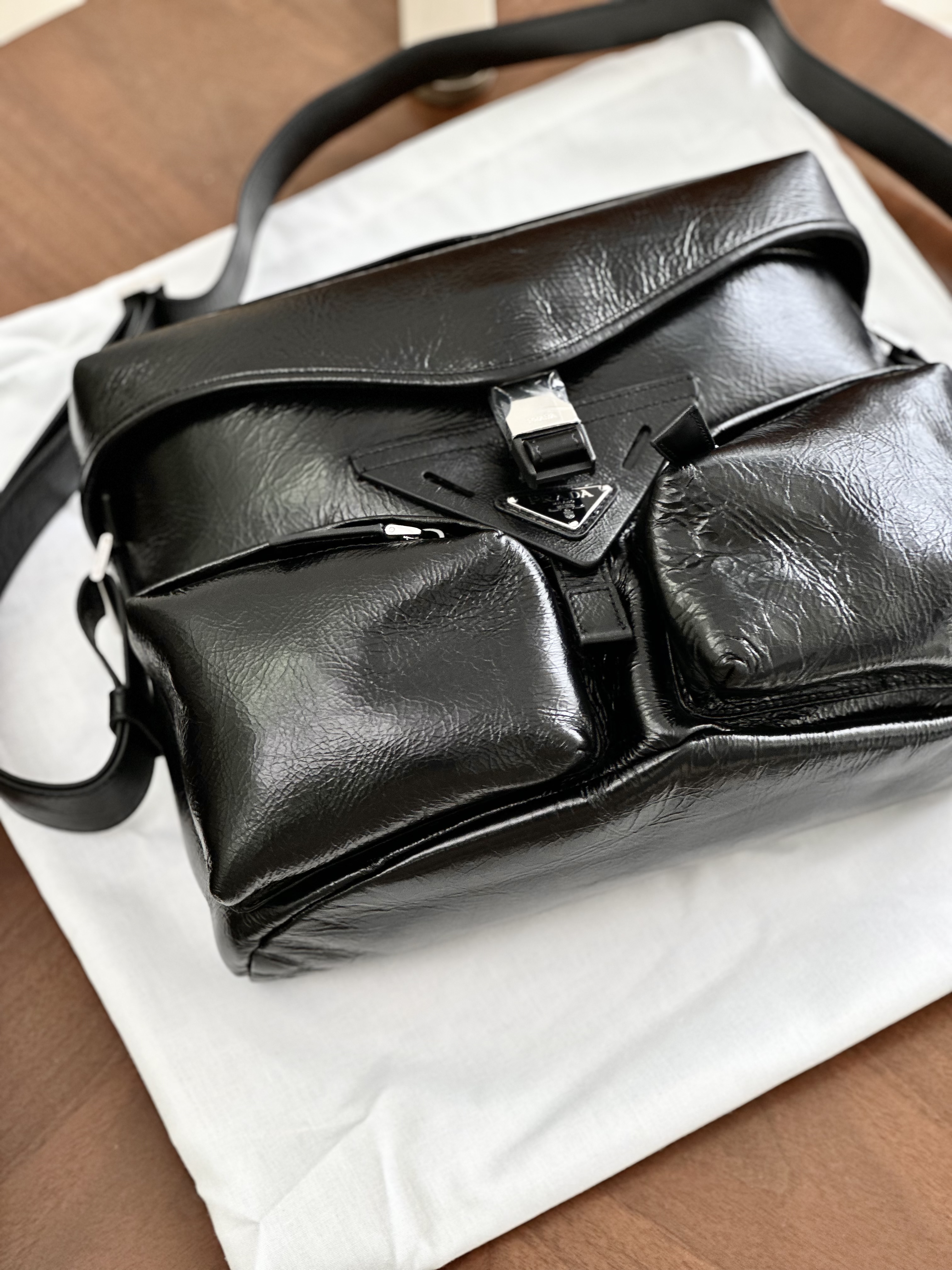只有12个!独家!!油蜡牛皮!随便出入专柜!新款普拉达走秀新款 油蜡皮机车包单肩斜挎包