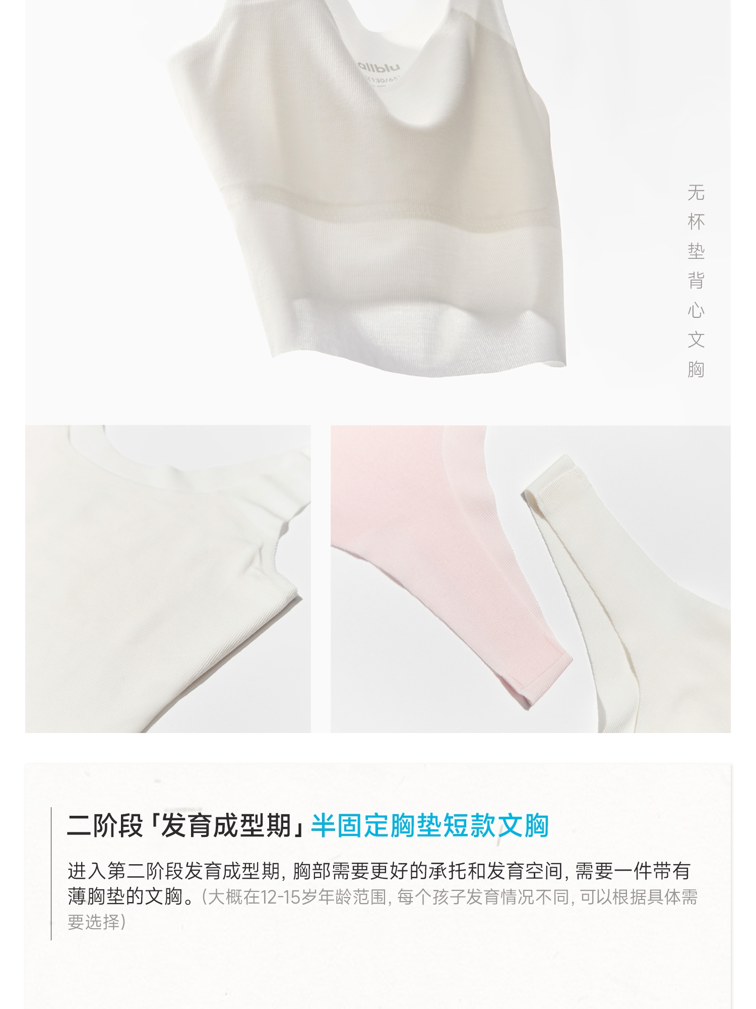 【粉丝专属】allblu幼岚儿童内衣发育期小学生女童背心文胸一二阶段少女文胸
