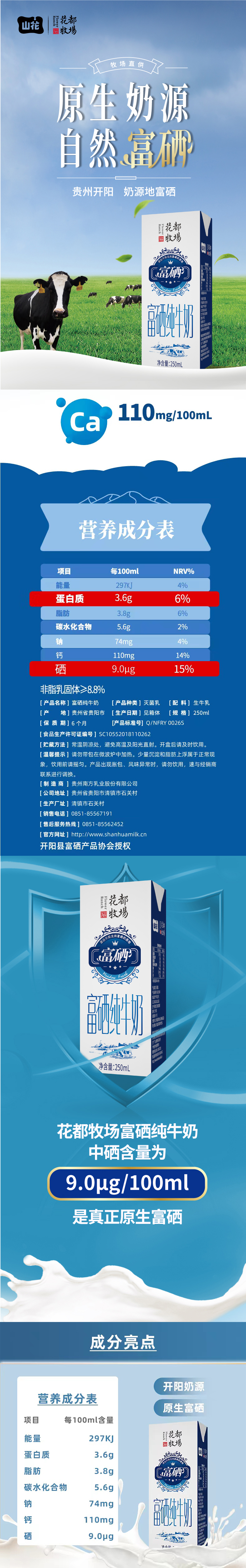 山花富硒纯牛奶250*12