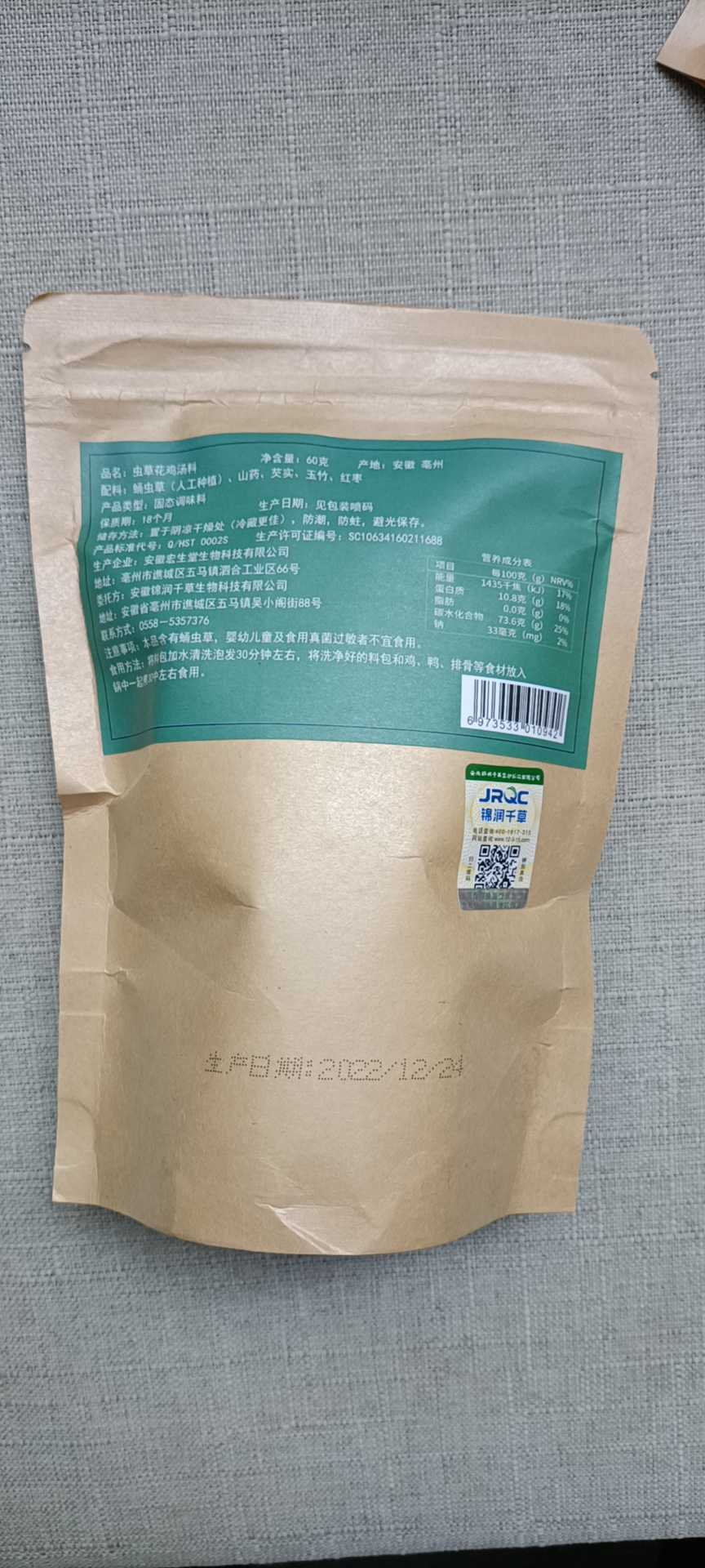 锦润千草 虫草花鸡汤料 60g/袋
