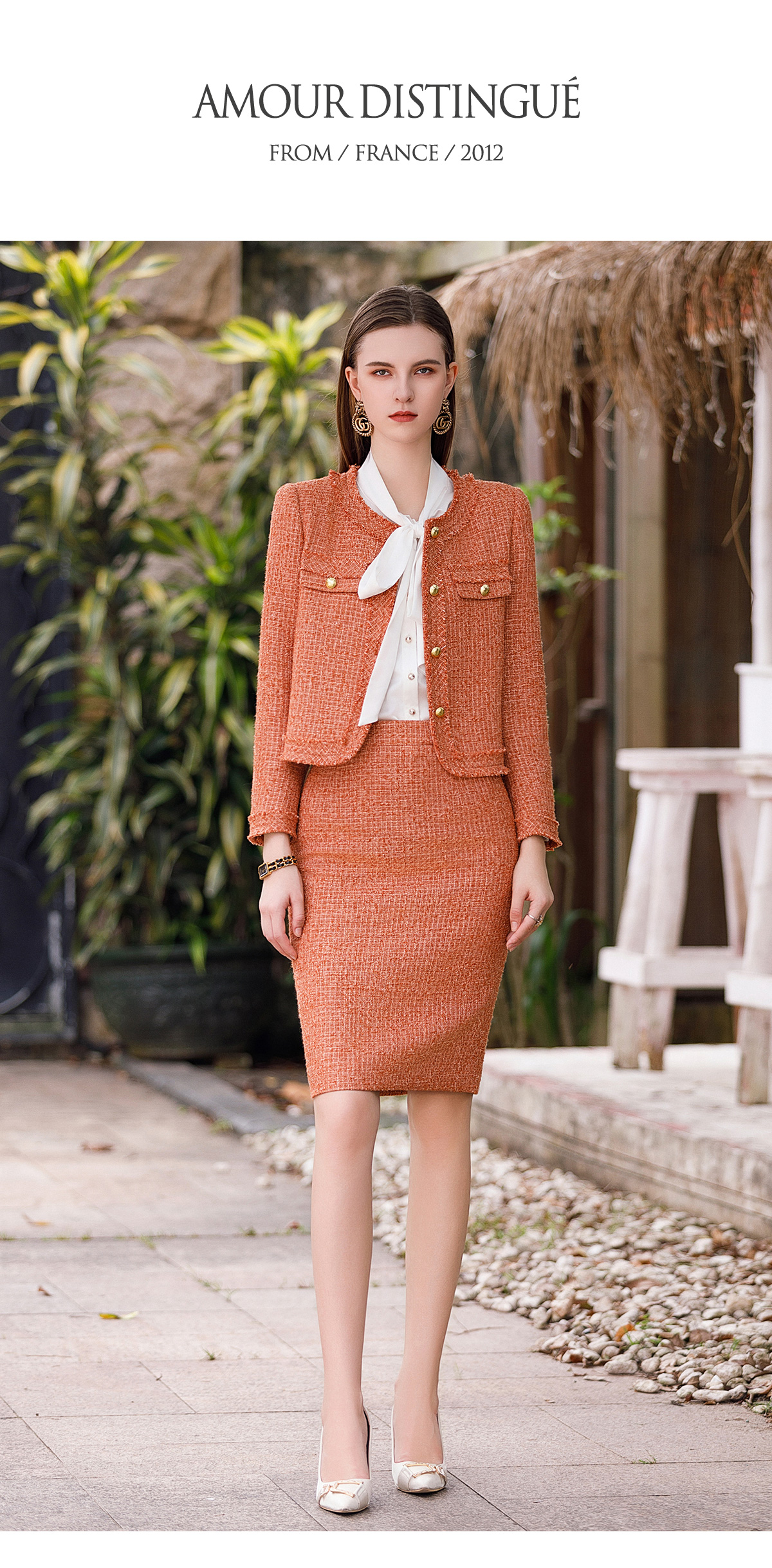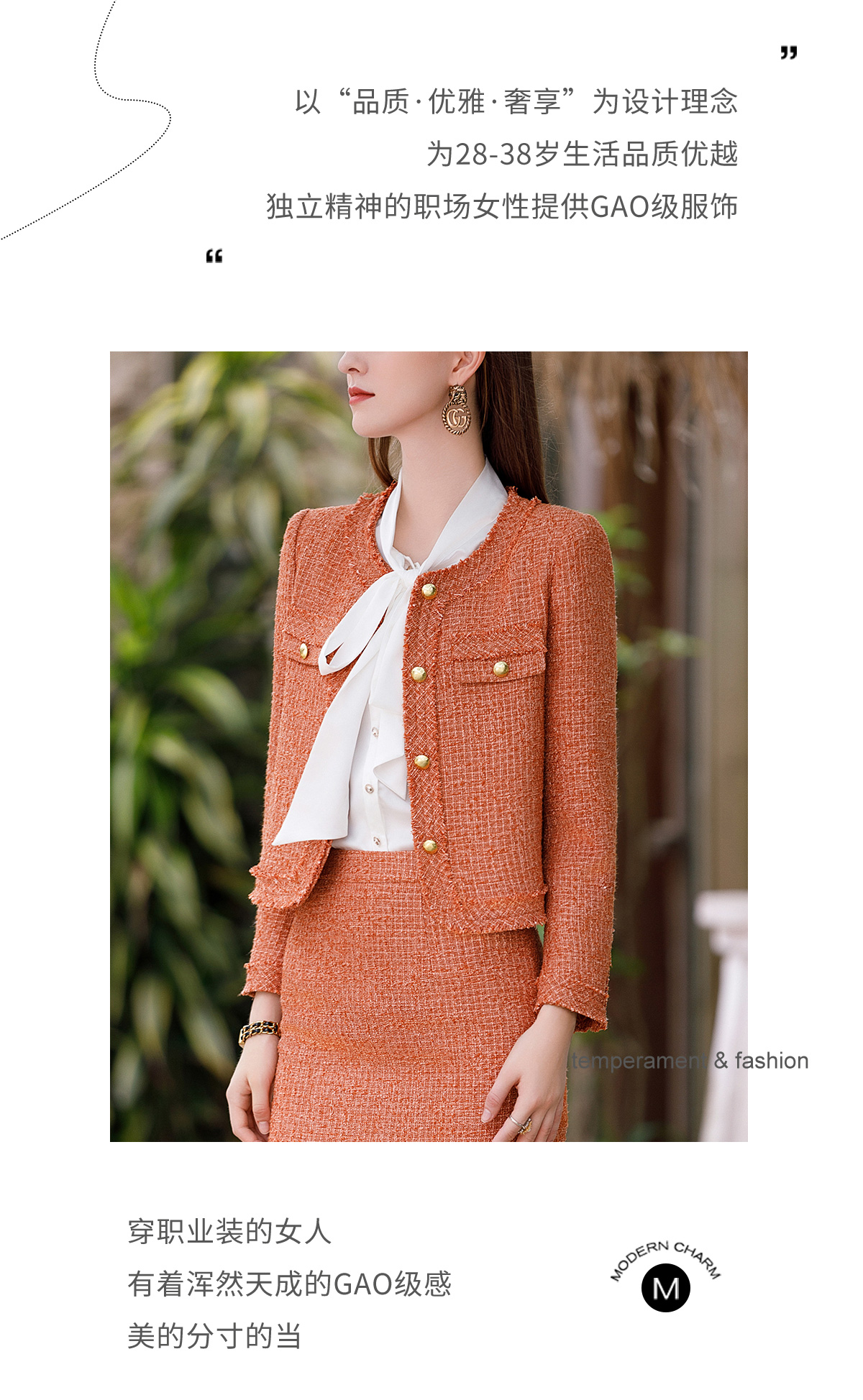 AD高级感金属扣小香风两件套女时尚气质圆领外套秋冬粗花呢套装裙
