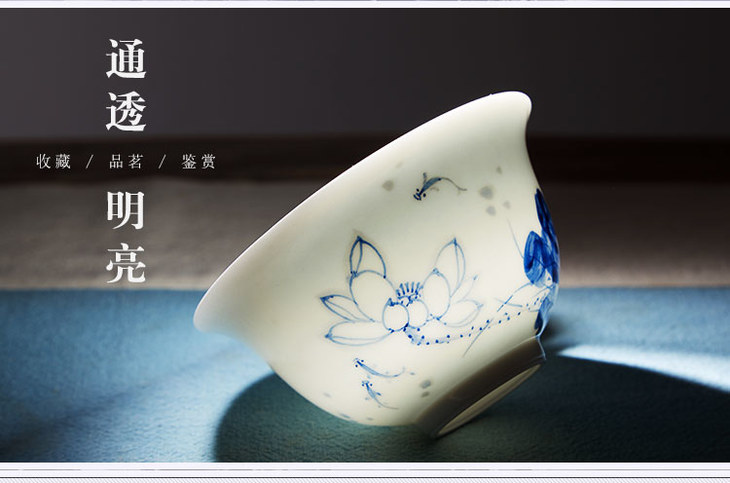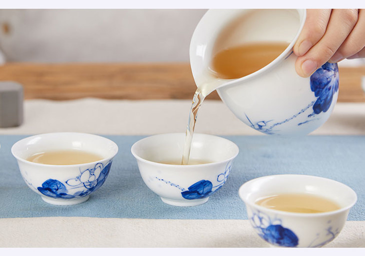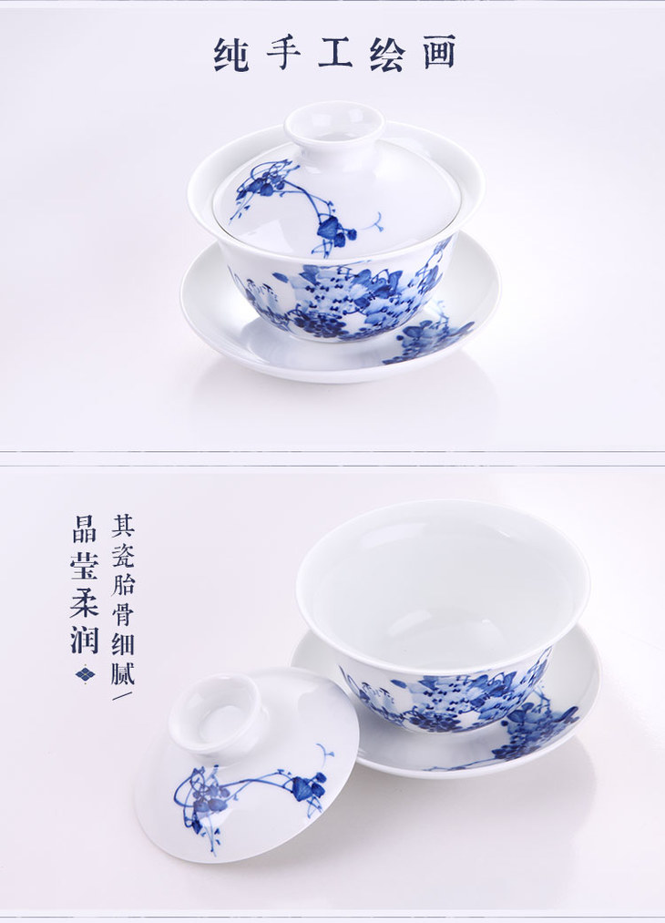 瑞和丨手绘青花瓷 荷花/紫藤套组 1盖碗1公道杯6品茗杯 景德镇陶瓷
