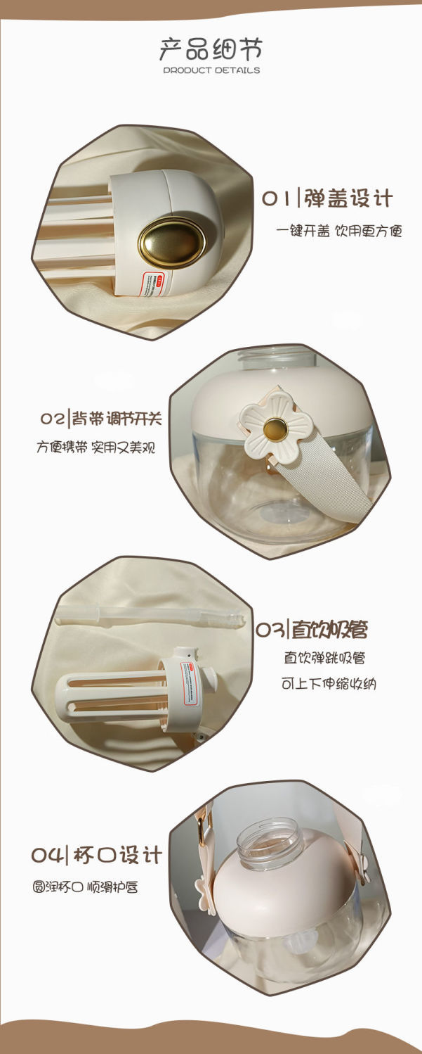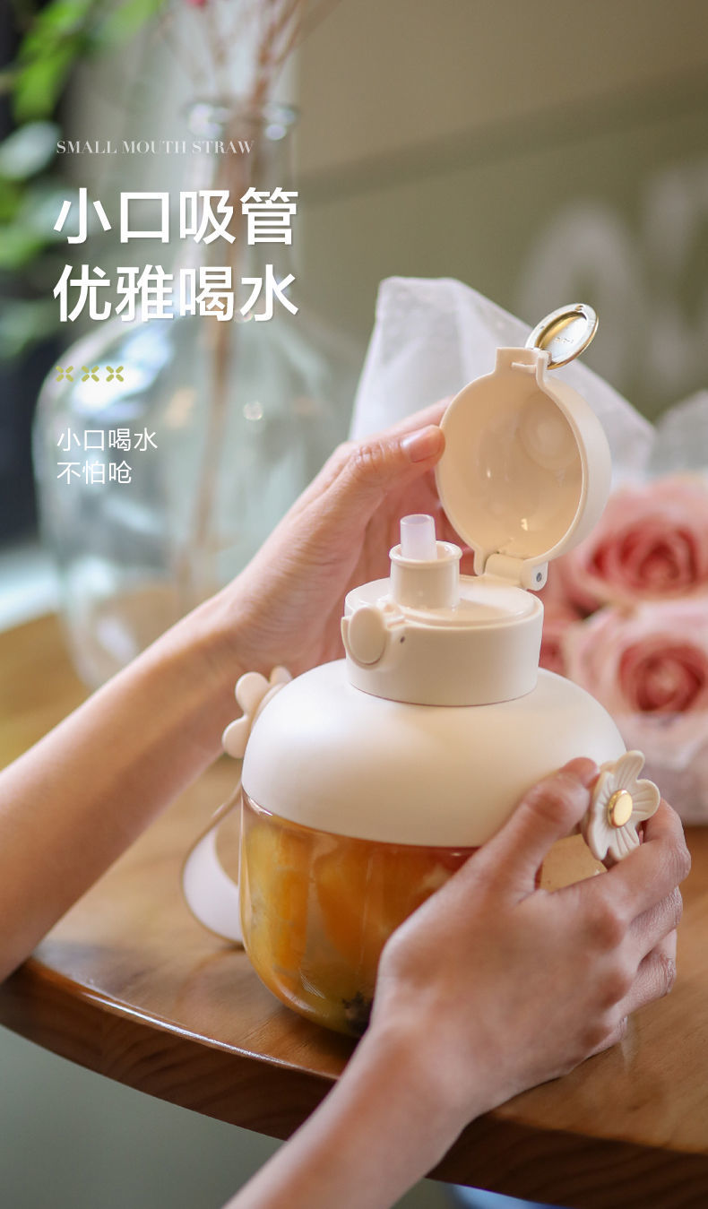 女神水杯设计感小众女生大容量高颜值tritan带吸管杯子夏季大肚杯
