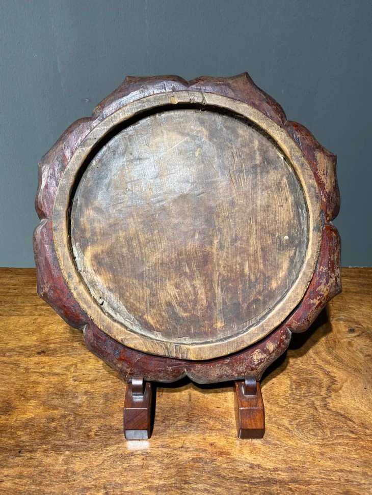 此典雅的佛前供奉器皿,取唐宋宝相莲花造型,木质坚硬比重高,油亮包浆皮壳特显贵气,唐式宝相莲花大供盘造型生动优雅,可当佛前供奉器或是距家高雅摆设。