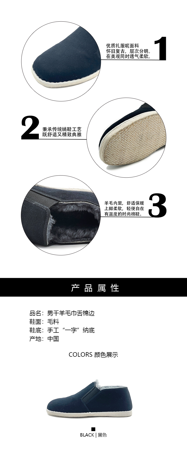 内联升男鞋秋冬千层底棉鞋羊毛巾舌棉边鞋8537A