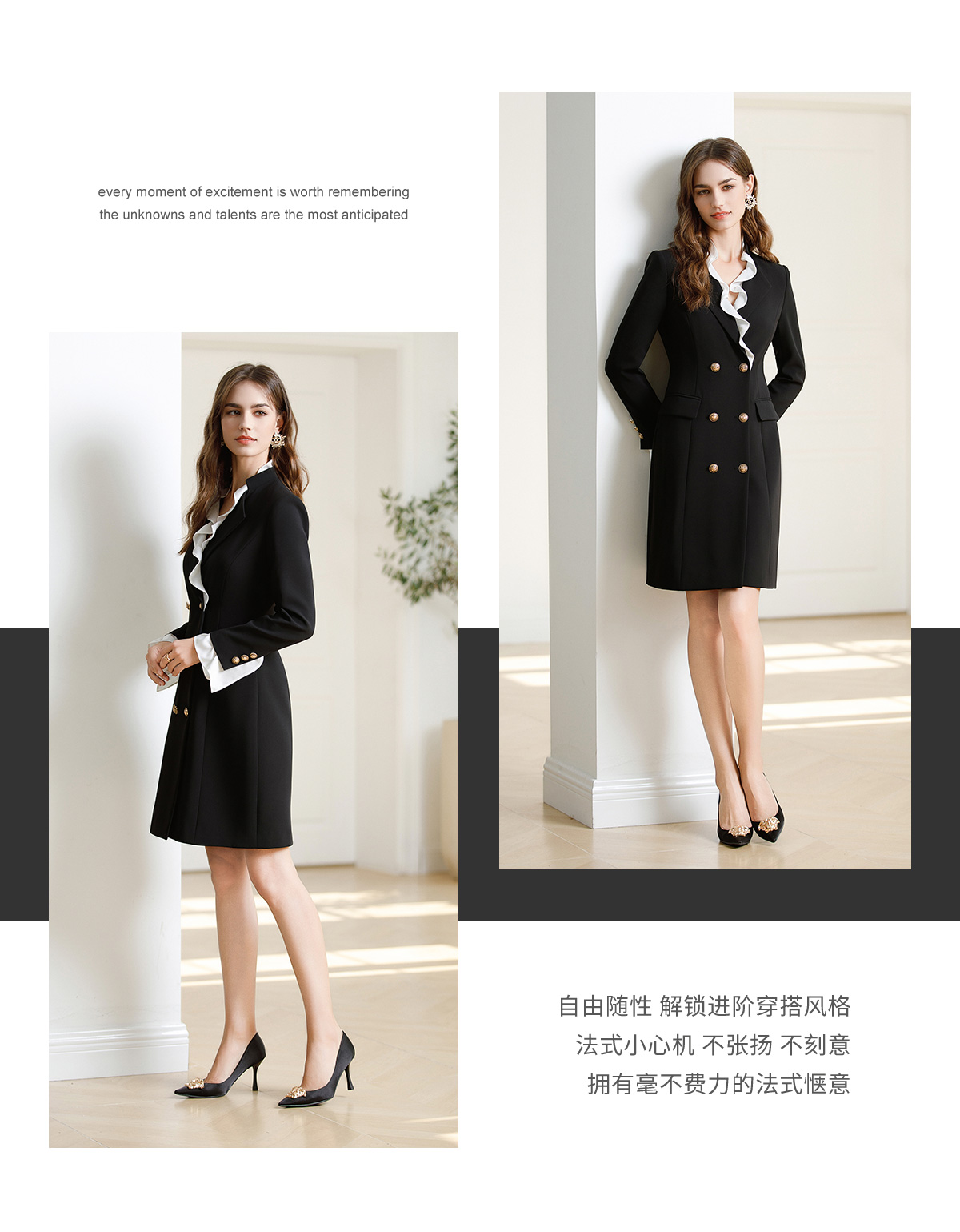 AD高端精致连衣裙女装2024春季新款木耳边西装裙职业女神范正装裙