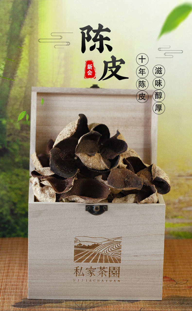 正宗新会陈皮10年老陈皮干泡水喝100克送木箱包装