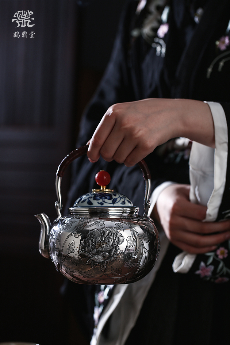鹤鼎堂闻天系列闻天鱼丽錾刻繁花似锦汤沸(银色)(缺货)