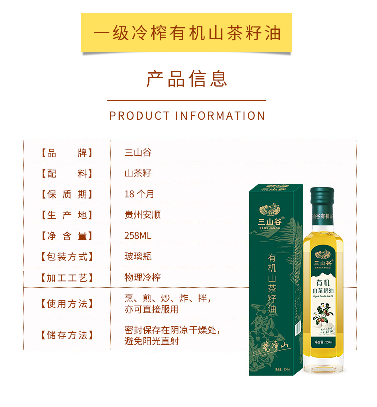 【快递包邮】贵州紫云 三山谷有机茶籽油258ml