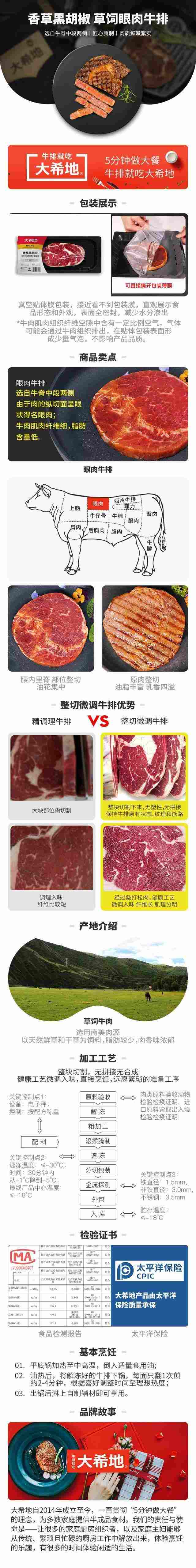 大希地香草黑胡椒草饲眼肉牛排130g(贴肤装)