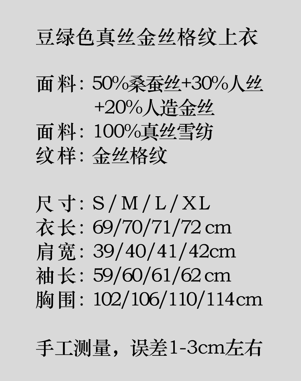 盛唐牡丹 |豆绿色真丝金丝格纹上衣(有内衬)