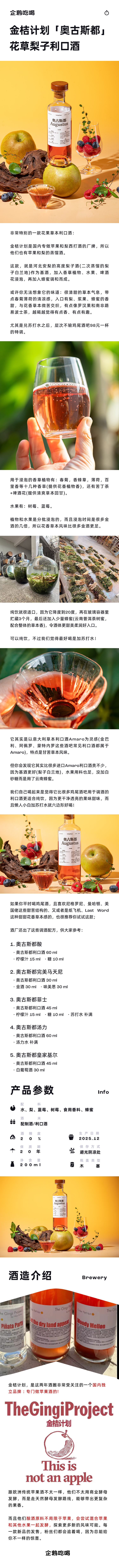 企鹅市集|金桔计划 奥古斯都 花果草本利口酒200ml 清甜草本气息