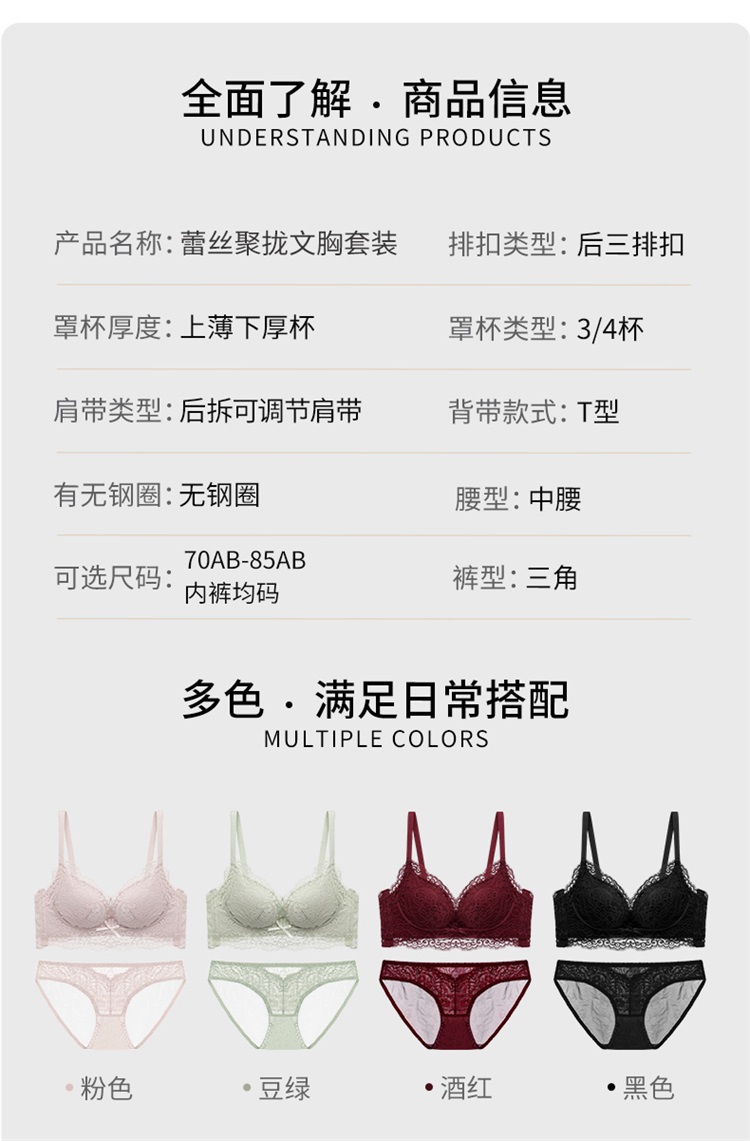 雅黛丽内衣聚拢小胸性感蕾丝文胸套装防下垂收副乳调整型美背胸罩