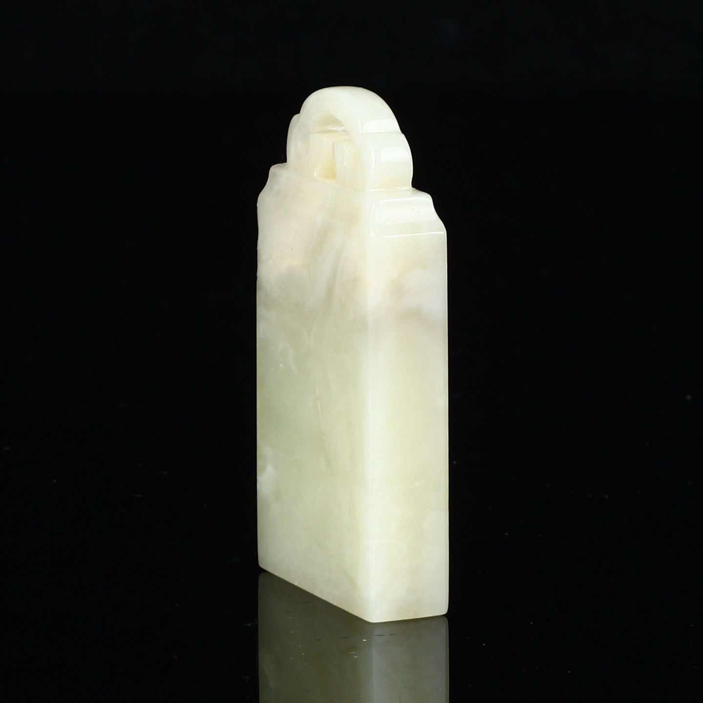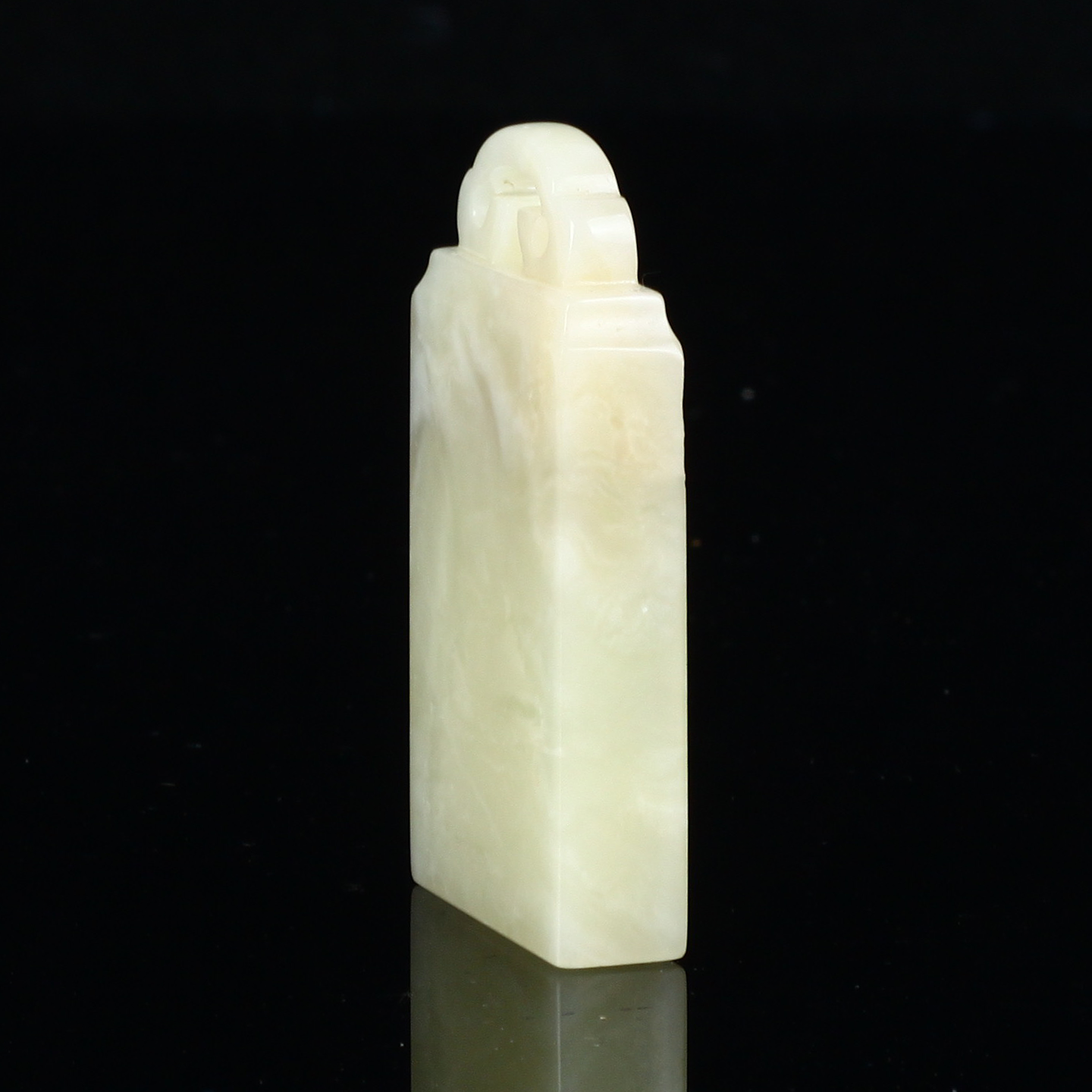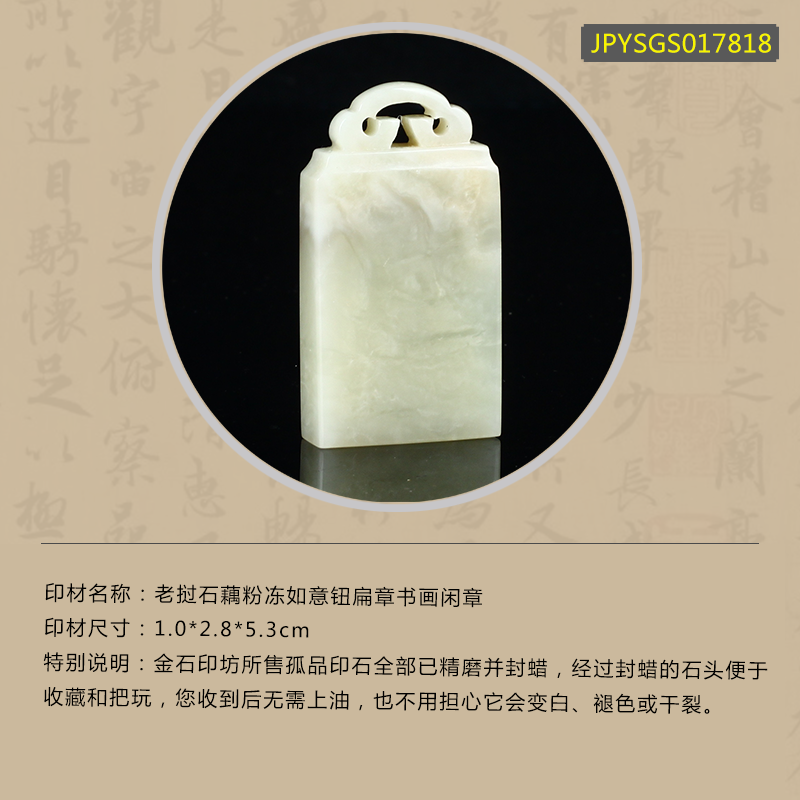 孤品17818老挝石藕粉冻如意钮扁章书画闲章1.0*2.8*5.3cm