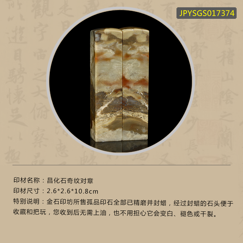孤品017374昌化石奇纹对章2.6*2.6*10.8cm