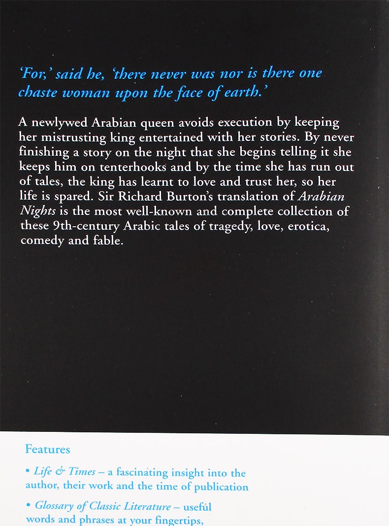 A collection of Persian, Arabian and Indian tales dating from the 9th century, Sir Richard Burton’s most well-known translation of Arabian Nights brings together ancient folklore and stories passed down from generation to generation.