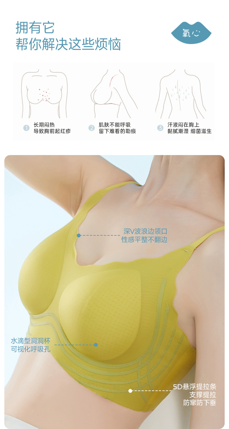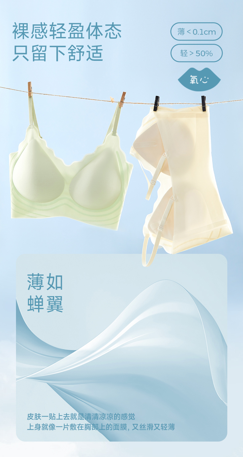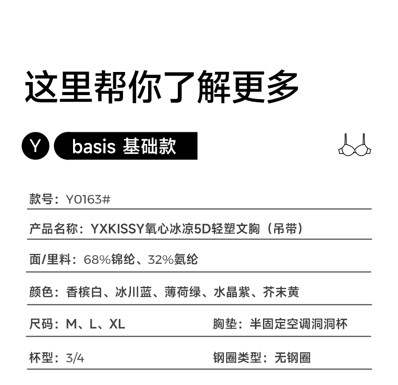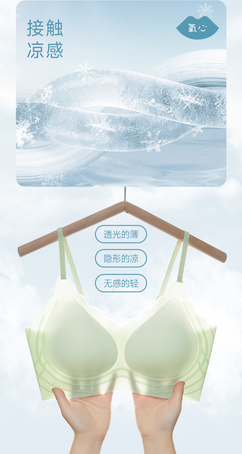 一盒两件装Y0163YXKISSY氧心冰凉5D轻塑文胸吊带 薄款冰丝内衣女夏季凉感聚拢文胸_ym