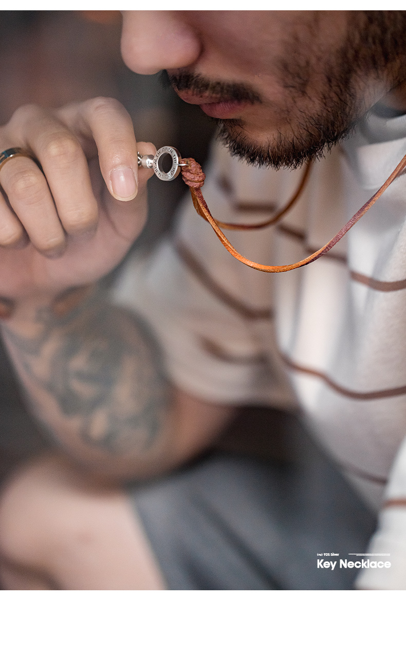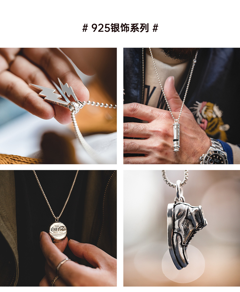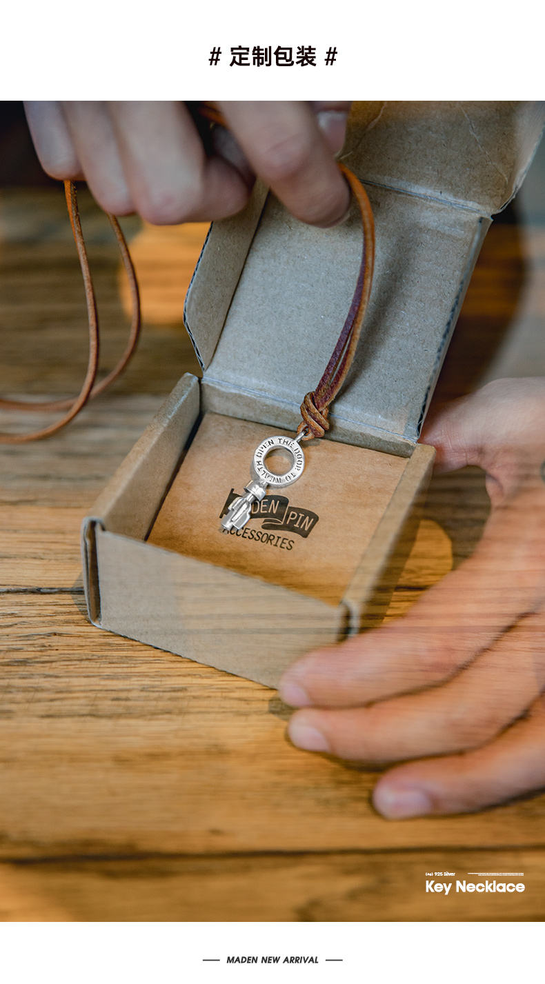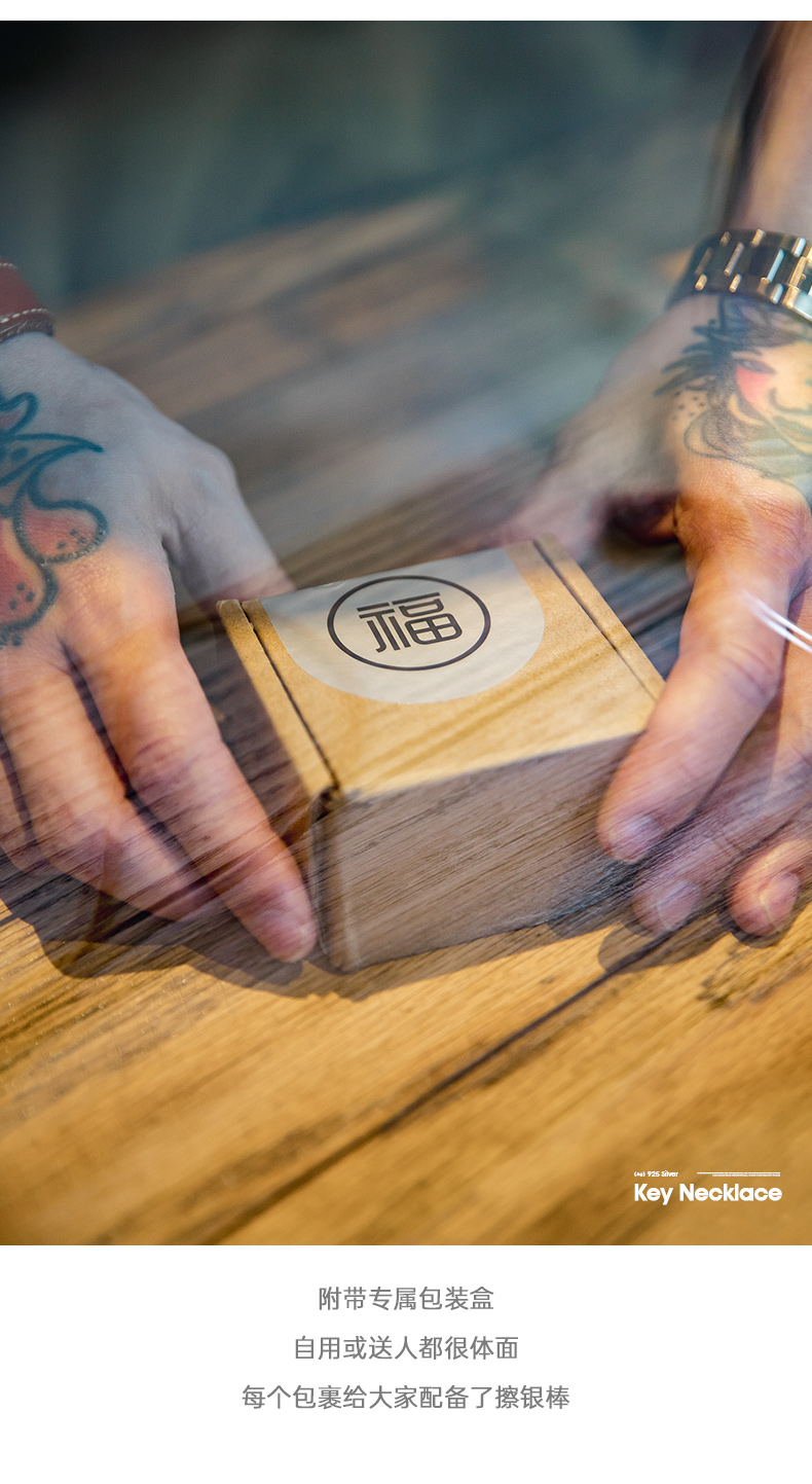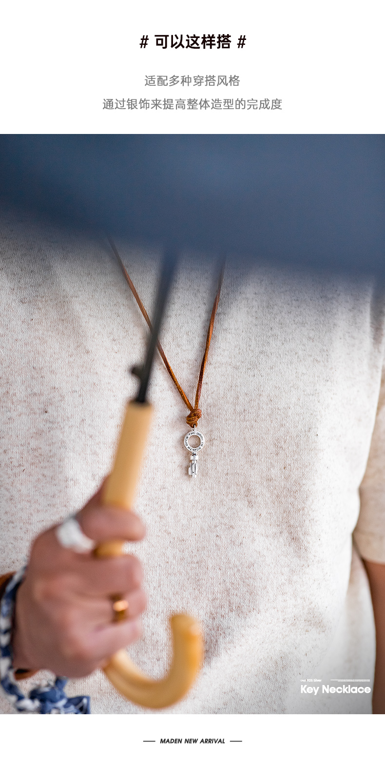 工装优选 美式复古做旧925纯银金库钥匙吊坠项链男女情侣挂件饰品