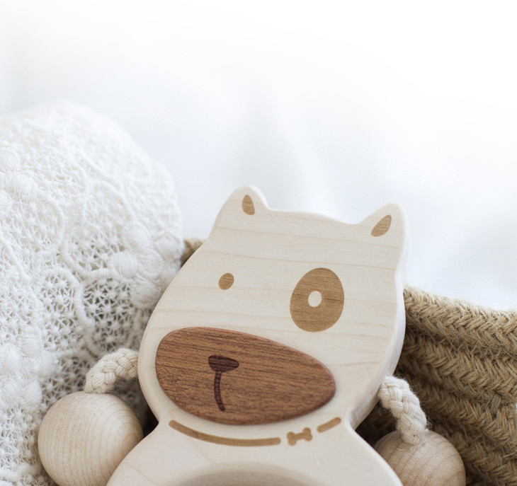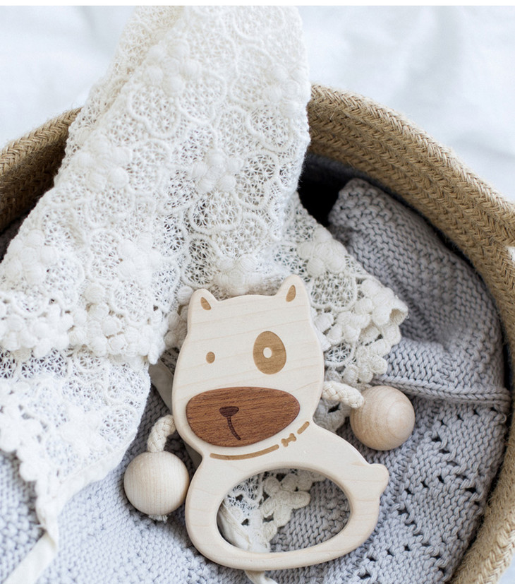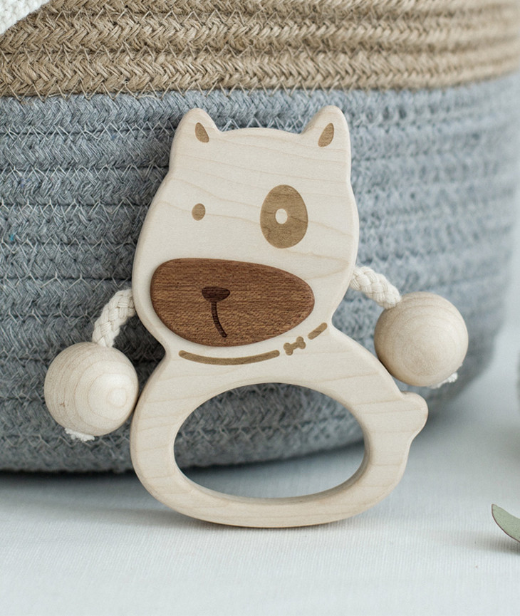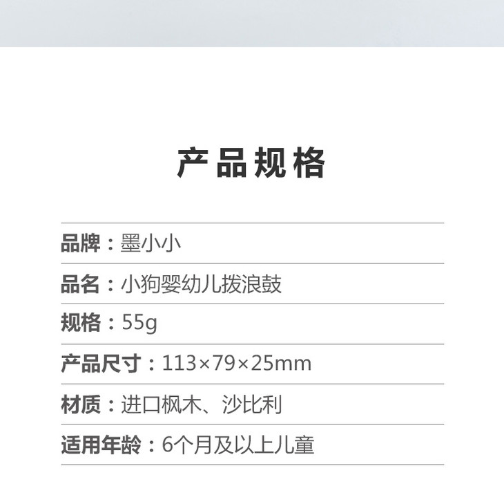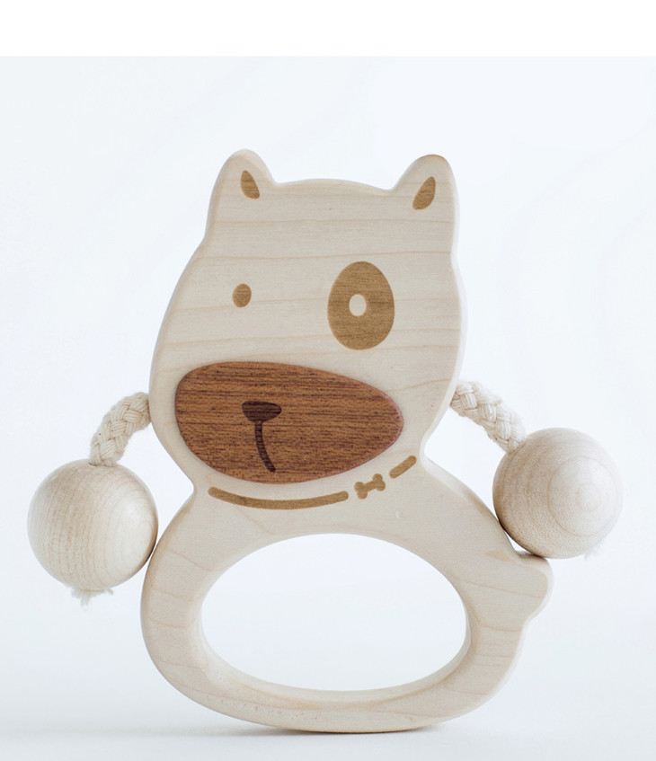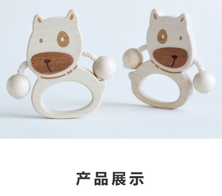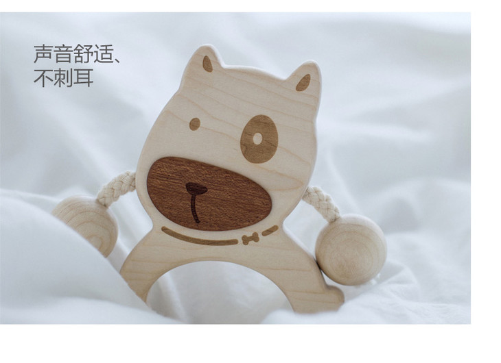 【6个月+】墨小小 甜甜汪幼儿拨浪鼓 纯手工木质儿童玩具 可啃咬