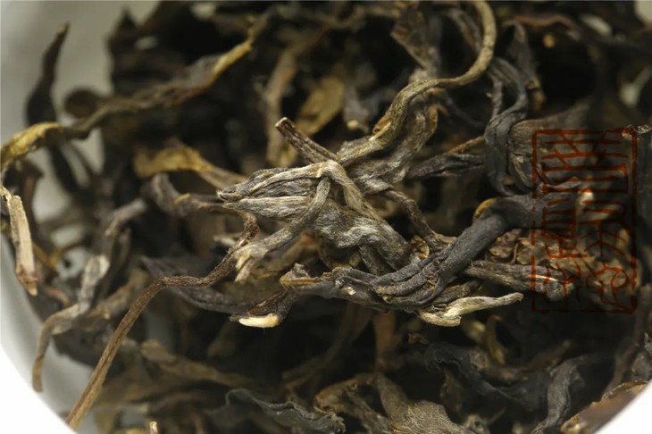沱茶压制松紧适中。条索黑绿粗壮,白毫不十分明显,这是昔归茶的典型特点。