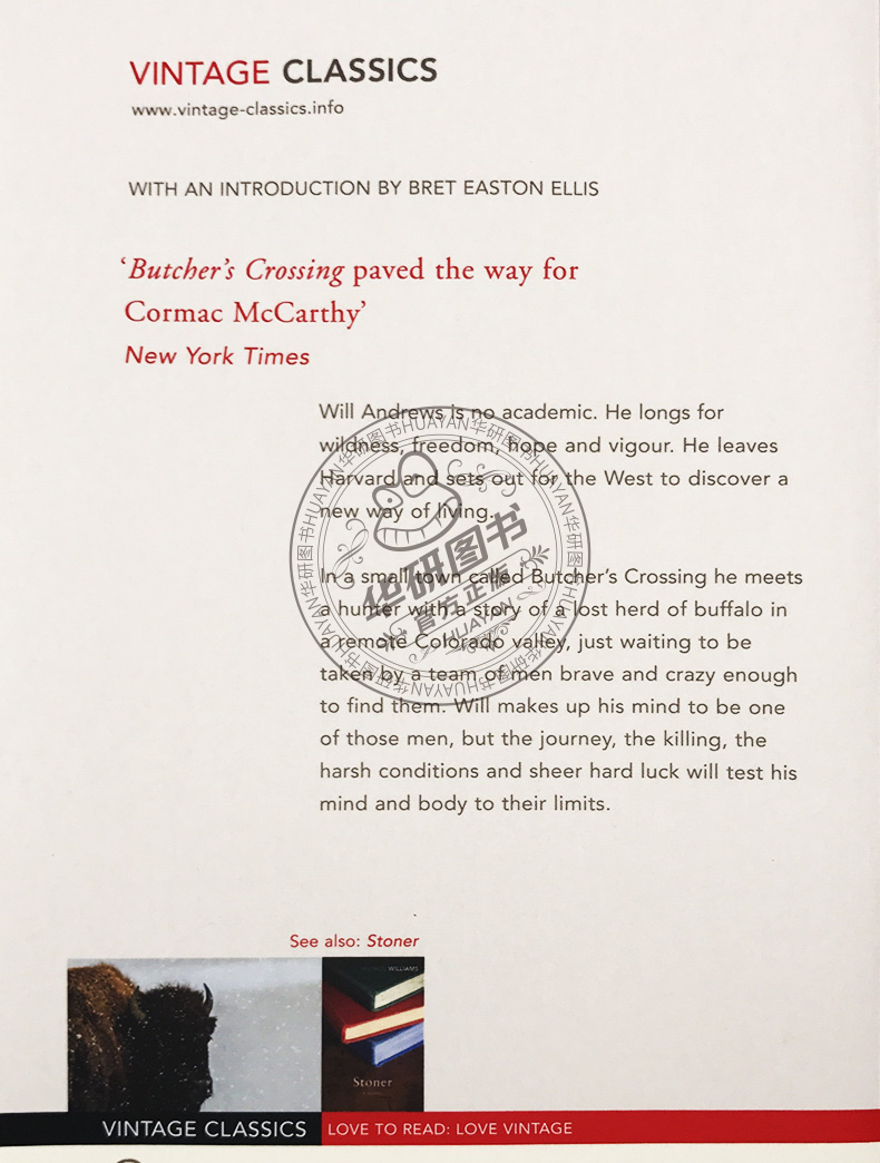 屠夫十字镇 英文原版小说 Butcher's Crossing 英文版进口原版英语经典文学书籍 约翰威廉斯 Vintage Classics 正版可搭斯通纳