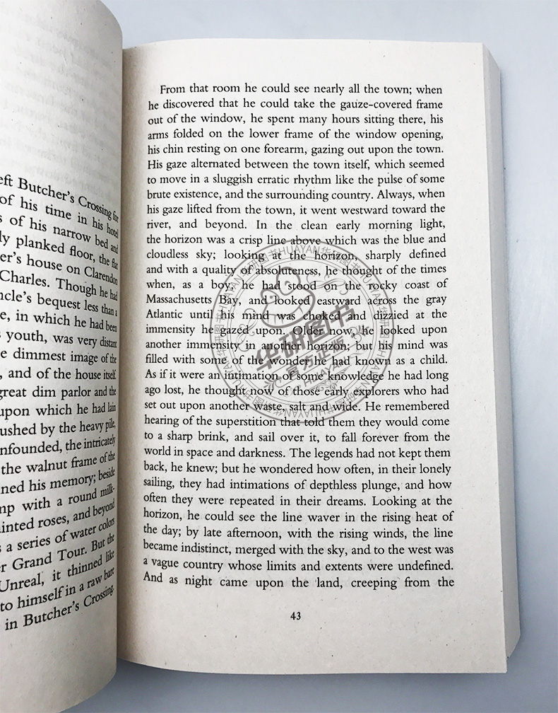 Will Andrews is no academic. He longs for wildness, freedom, hope and vigour. He leaves Harvard and sets out for the West to discover a new way of living.In a small town called Butcher’s Crossing he meets a hunter with a story of a lost herd of buffalo in a remote Colorado valley, just waiting to be taken by a team of men brave and crazy enough to find them. Will makes up his mind to be one of those men, but the journey, the killing, harsh conditions and sheer hard luck will test his mind and body to their limits.