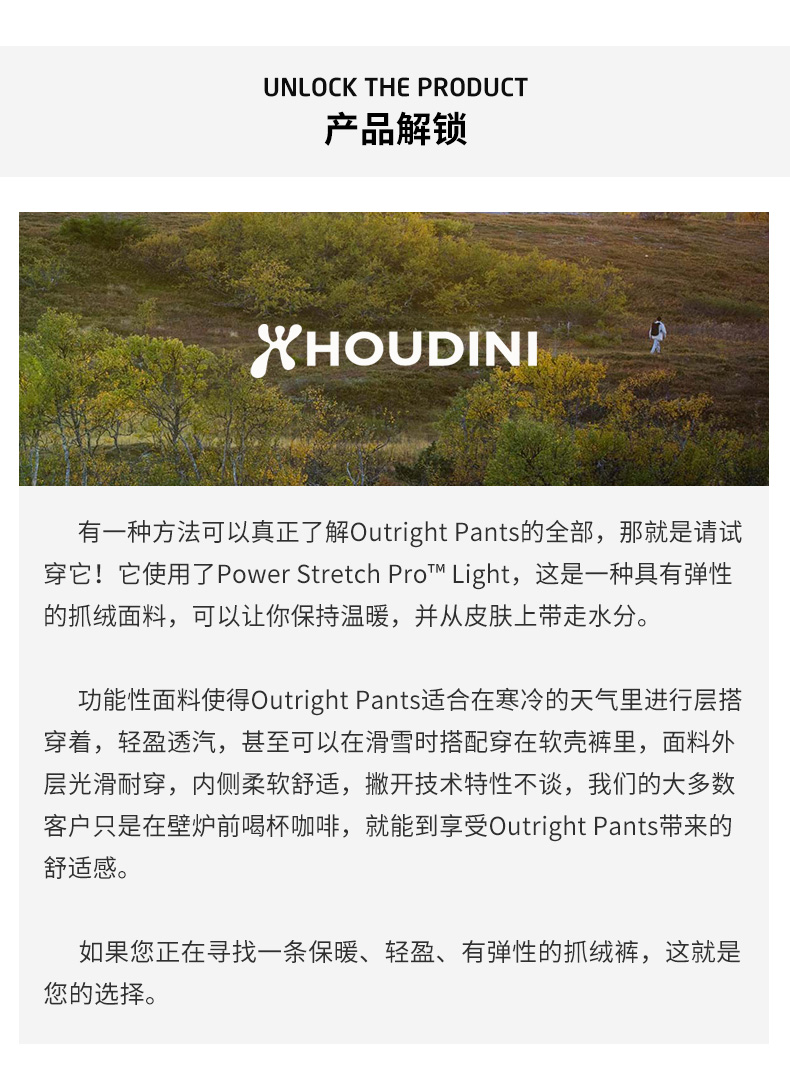 HOUDINI胡丁尼 Outright 直率 户外男款保暖抓绒裤830006