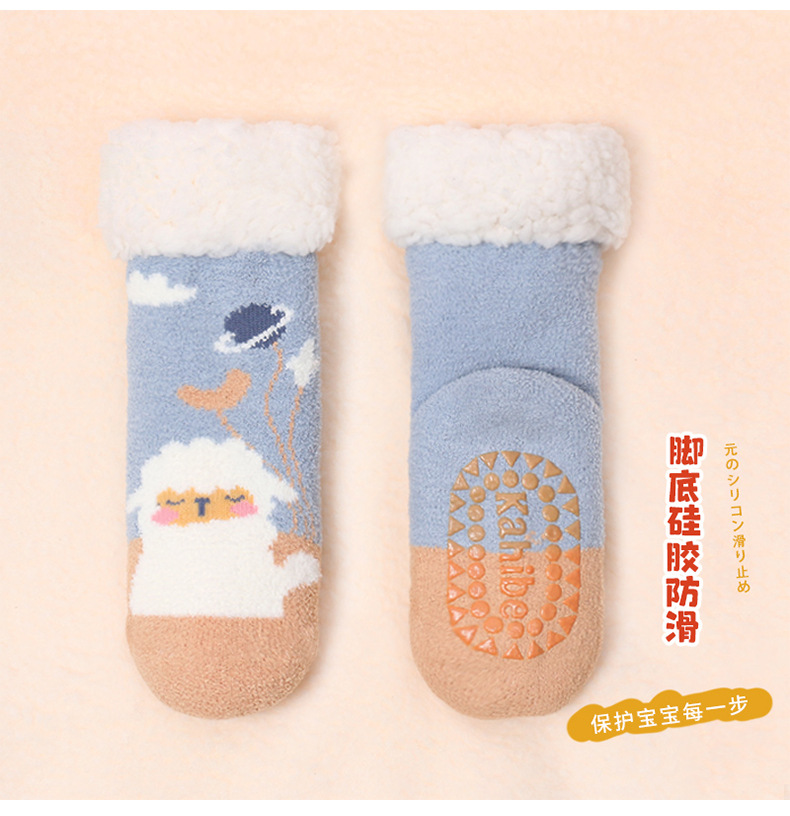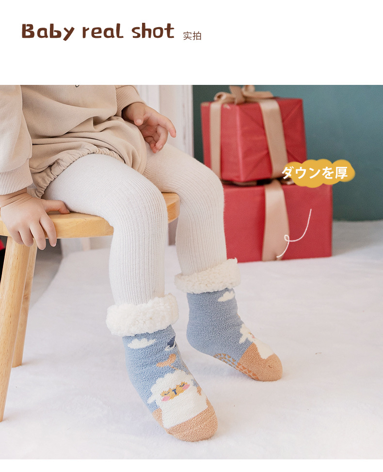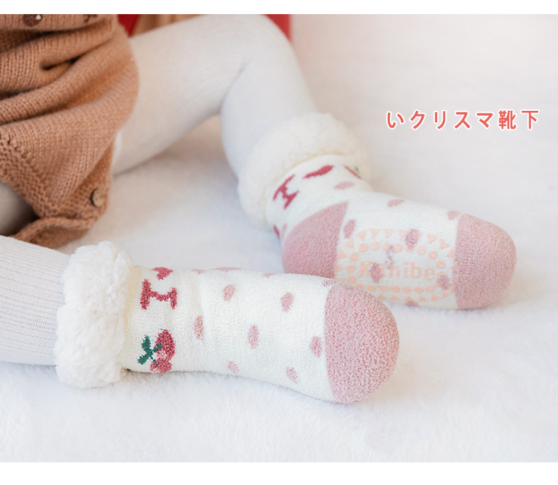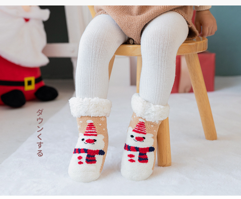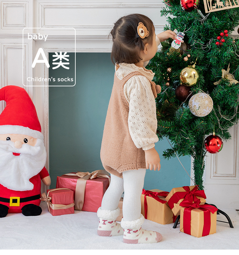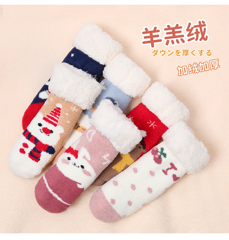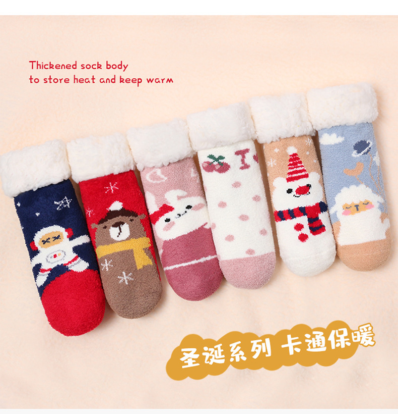 【2双】冬季加厚珊瑚绒圣诞袜子婴幼儿小童宝宝睡眠袜子袜套羊羔绒地板袜