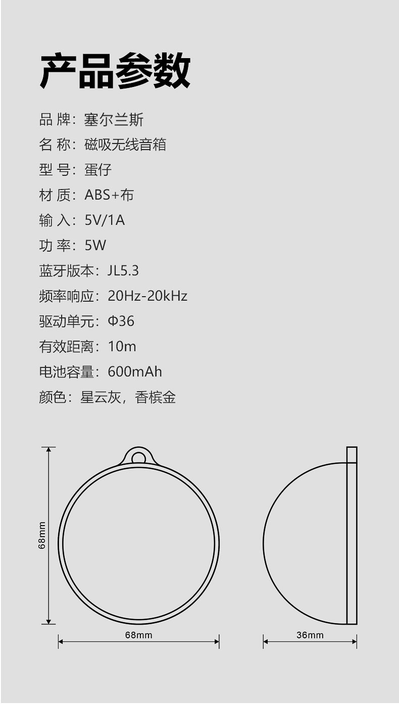 【鸿蒙合作品牌 ~免费试用15天】塞尔兰斯迷你便携磁吸音箱一机=支架+音响+氛围灯 +2个音箱可同时串联